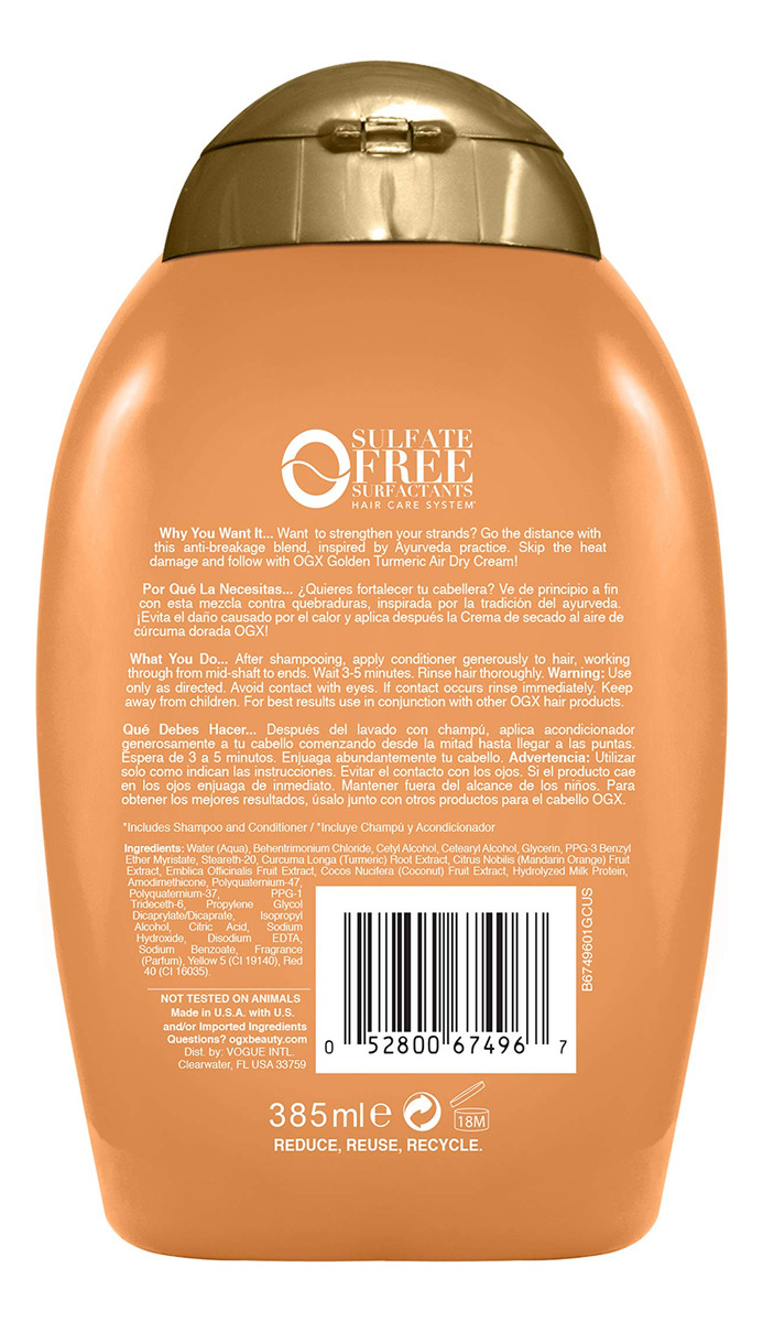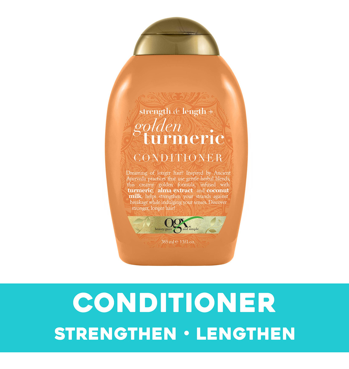 Condicionador OGX Strength Length + Golden Curcuma com leite para acalmar o couro cabeludo e nutrir o cabelo, surfactantes Ayurveda sem sulfato para cabelos mais fortes e longos, coco, 13 fl oz – Tipo de produto: Beleza – Dimensão da embalagem do item: 7,5 cm L x 7,9 cm L x 14,8 cm H – Peso da embalagem do item: 14,9 onças – País de origem: Estados Unidos – Prática inspirada nas práticas e práticas da Ayurveda Antiga medicina hindu, este condicionador cremoso é baseado em ingredientes à base de plantas conhecidos por promover o bem-estar de cabelos com aparência mais saudável.