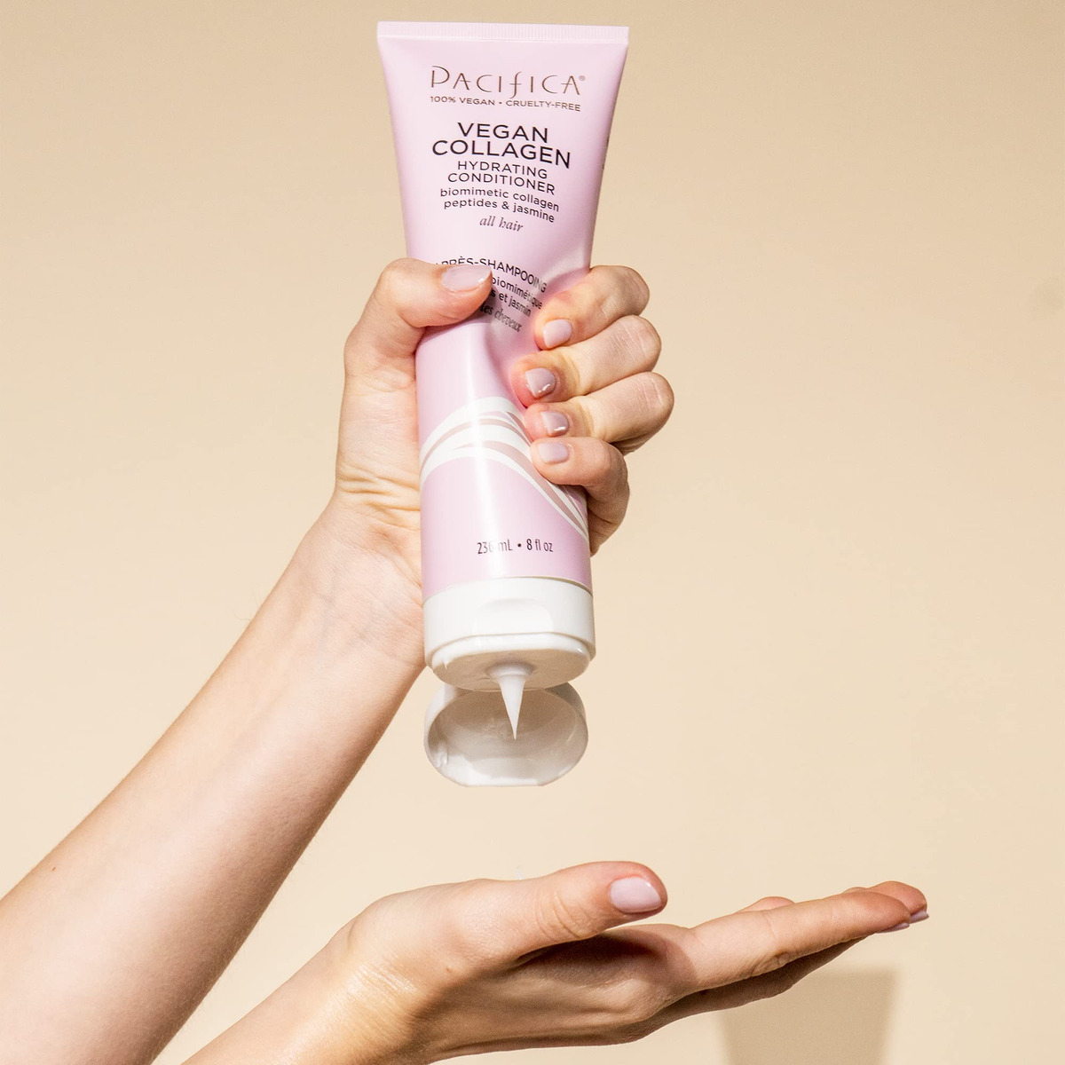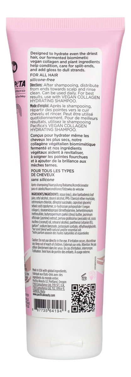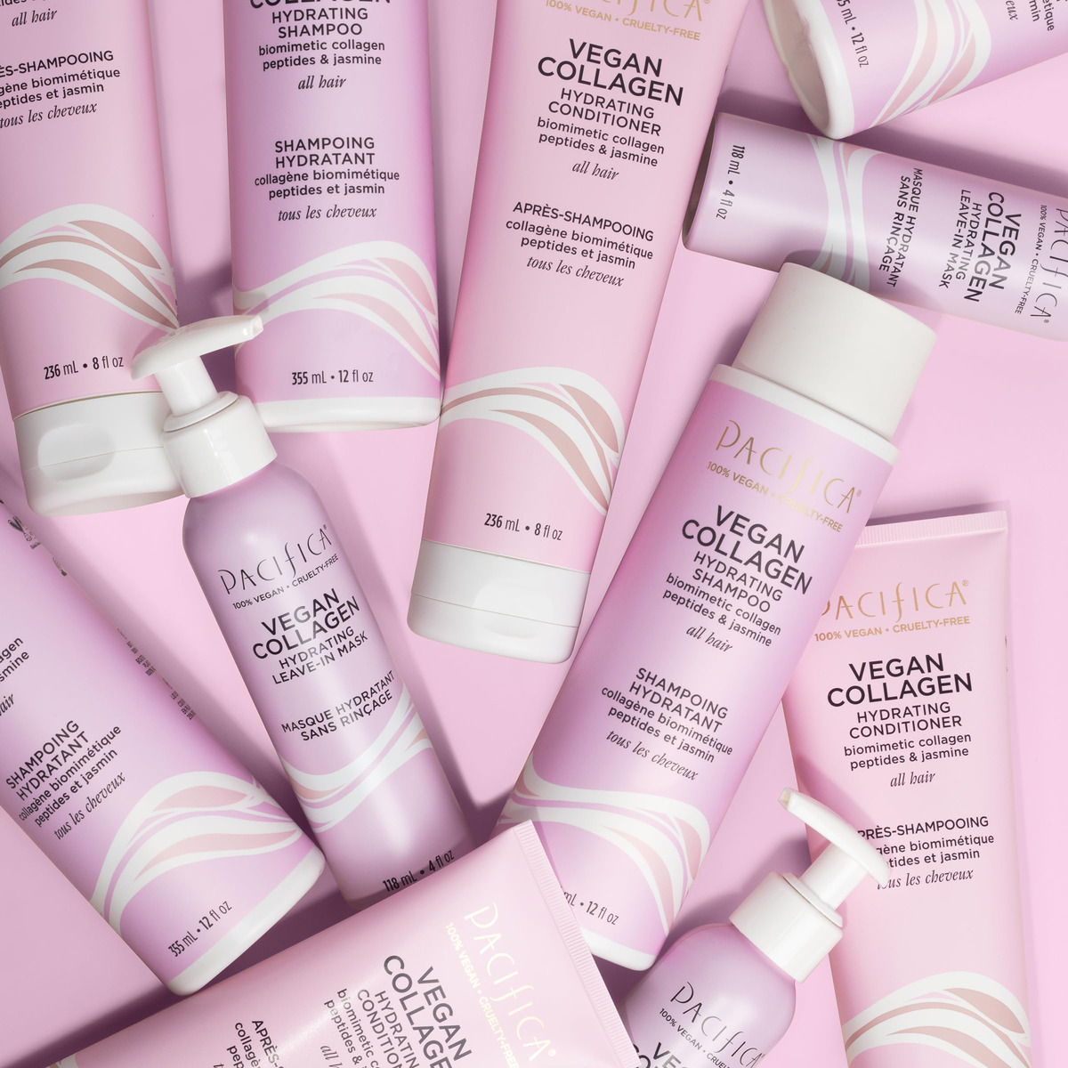 Condicionador hidratante de colágeno vegano Pacifica Beauty, cuidados com o cabelo, óleo de abacate, vitamina B5, adiciona e restaura o brilho, para cabelos secos e danificados, sem sulfato e silicone, cuidado do cabelo, 8 fl oz (1 unidade) — condicionador hidratante de colágeno vegano, um condicionador luxuoso e rico em umidade, projetado para proporcionar hidratação profunda e leve até mesmo aos cabelos mais secos. Inclui uma mistura de colágeno vegano fermentado e ingredientes vegetais para ajudar a suavizar, restaurar o brilho, tratar pontas duplas e fios mais secos – INGREDIENTES QUE SEU CABELO VAI ADORAR Peptídeos de colágeno biomimético fermentado: peptídeos de colágeno vegano feitos em laboratório que foram criados para imitar peptídeos capilares naturais para ajudar a restaurar a força e a elasticidade dos fios de dentro para fora. Pró-vitamina B5: ajuda a selar a cutícula de cada mecha, para alisar o cabelo e evitar crespos e quebras, óleo de abacate: composto por ácidos graxos monoinsaturados, para ajudar a selar o cabelo fios, retêm a umidade e suavizam a quebra, e extrato de jasmim: ajuda a hidratar e proteger o cabelo e o couro cabeludo. Cabelos mais brilhantes, brilhantes e lisos, formulados para desembaraçar e melhorar a maleabilidade do cabelo. Este condicionador ajuda a selar pontas duplas e dar brilho, ao mesmo tempo em que fornece hidratação superior aos cabelos ressecados. – Livre de produtos químicos agressivos, formulado sem parabenos, ftalatos, SLS, óleo mineral, sulfatos, silicones ou talco – 100% vegano e livre de crueldade, seguro para o planeta, animais e você!