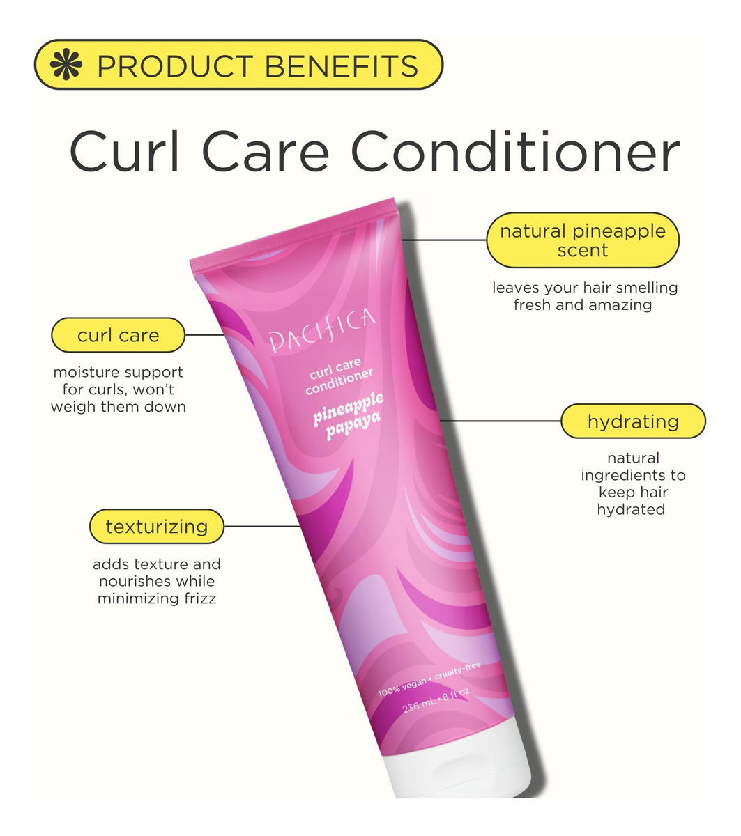 Condicionador Pacifica Curly — Tratamento capilar com abacaxi e mamão, projetado para realçar os cachos naturais, seguro de cor, vegano e livre de crueldade. Condicionador de preservação de cachos: cuide de seus cachos com o condicionador Pineapple Papaya Curl Care, desenvolvido para condicionar profundamente, preservando e realçando a beleza natural de seus cachos. – NUTRE E HIDRATA: infundido com abacaxi, mamão e hialurônico ácido ônico, vitamina B5 e superóleos, este condicionador nutre e hidrata o cabelo. O resultado são travas suaves e definidas, cheias de vida. – COMO USAR: Smooth on. Espere pelo menos 1 minuto antes de enxaguar. Combine com nosso shampoo Pineapple Papaya Curl Care Foam. – CONSCIENTE DO CLIMA: Em parceria com a Plastic Collective, a Pacifica Beauty fornece fundos para ajudar a apoiar o desenvolvimento de empresas sociais de reciclagem de plástico e lidar com o desperdício de plástico em territórios com alto vazamento ambiental. – PACIFICA: Pacifica: Pacifica se esforça para capacitar as pessoas a abraçarem sua beleza natural e fazerem escolhas alinhadas com seus valores. Acreditamos que todos merecem produtos eficazes que usem ingredientes 100% veganos e livres de crueldade a preços acessíveis.