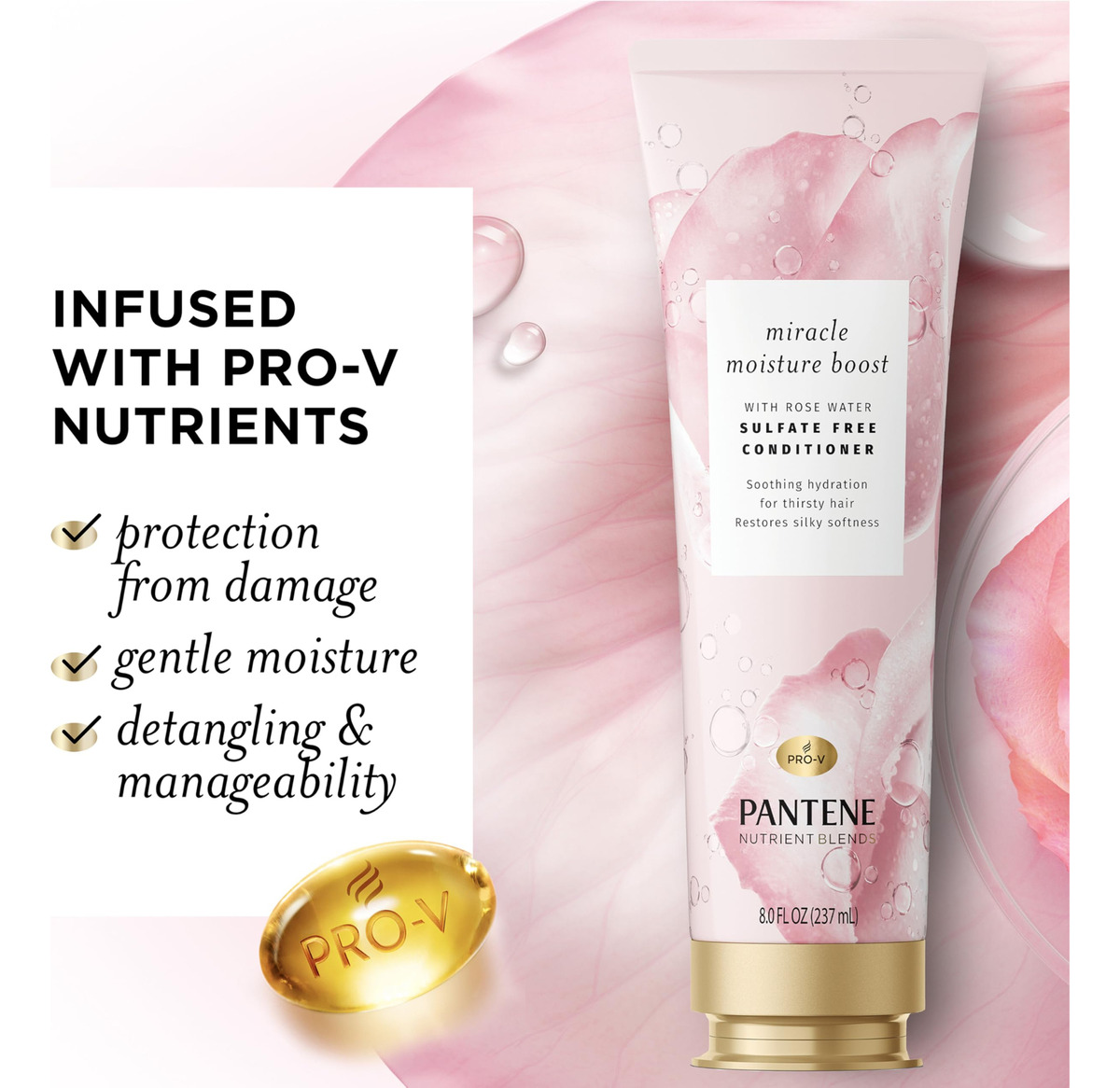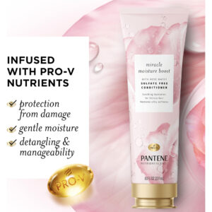 Condicionador de água de rosas Pantene Nutrient Blends Miracle Moisture Boost para cabelos secos, sem sulfato, 8 ml de onça – Dimensão da embalagem do item: 8,3 polegadas L x 2,85 polegadas L x 1,95 polegadas H – Peso da embalagem do item: 0,59 libras – Tipo de produto: condicionador – País de origem: Estados Unidos – A fórmula segura para cores é segura para cabelos tratados quimicamente
