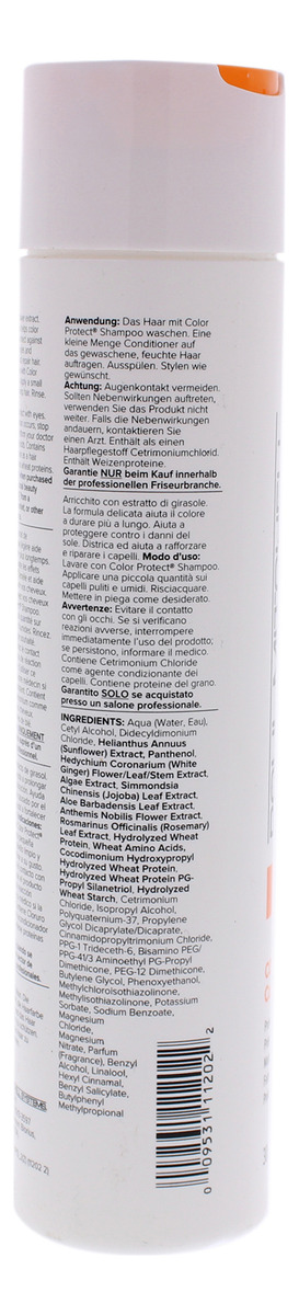 Desembaraça e suaviza instantaneamente, enquanto as proteínas vegetais, aminoácidos e pantenol fortalecem e hidratam os cabelos tingidos. Protege O extrato de girassol protege a estrutura do cabelo, fornece proteção UVA e UVB e ajuda a prevenir o cabelo