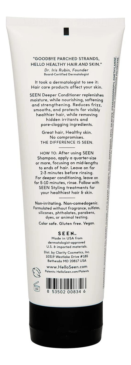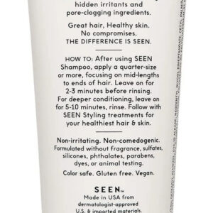Desenvolvido por um dermatologista especificamente para cabelos mais secos que precisam de hidratação extra, este condicionador sem perfume ajuda a desembaraçar, suavizar, realçar o brilho, reduzir o frizz e minimizar a quebra*, ao mesmo tempo em que prepara o cenário para um couro cabeludo e cabelos saudáveis. Formulado com ingredientes bons para o cabelo (e a pele), este condicionador remove irritantes ocultos e óleos que obstruem os poros, ao mesmo tempo que é seguro para todos os tipos de cabelo e pele, incluindo os tratados com cor e queratina. – O QUE É: Um shampoo dermatologista, sem fragrância, vegano e não comedogênico, suave, mas eficaz. O shampoo SEEN, sem perfume, é isento de sulfato e fornece uma espuma luxuosa que enxagua facilmente sem deixar o cabelo ou o couro cabeludo despojados. Você verá menos crespo e cabelos mais lisos. Seguro para peles sensíveis. Seguro para peles com tendência a acne. Seguro para peles propensas a eczema. — Livre de: shampoo não comedogênico, seguro para peles sensíveis e formulado sem fragrâncias, sulfatos, silicones, ftalatos, parabenos, corantes, óleos que obstruem os poros, conservantes liberadores de formaldeído, cocamidopropil betaína e glúten. Aprovado pela PETA e pelo Leaping Bunny. – BOM PARA: limpo e vegano. Shampoo sem sulfato que é bom para todos os tipos de pele e cabelo. Seguro para cores, seguro para queratina. Pode ser usado diariamente. Seguro para peles sensíveis. Seguro para eczema e pele propensa a acne. Reduz o frizz, suaviza o cabelo e dá brilho. – CLINICAMENTE COMPROVADO: shampoo sem perfume desenvolvido por dermatologistas que não é comedogênico (não obstrui os poros) e não é irritante. Seguro para peles sensíveis. Seguro para peles com tendência a acne. Seguro para peles propensas a eczema. – O Fragrance Free SEEN foi formulado para ser verdadeiramente livre de fragrâncias. Não há óleos essenciais em nenhum produto SEEN, perfumado ou sem fragrância, e nossos produtos sem fragrância não têm fragrância ou fragrância mascaradora. Você pode notar que o produto tem um leve aroma que se origina dos ingredientes crus, mas essa não é uma fragrância adicional.