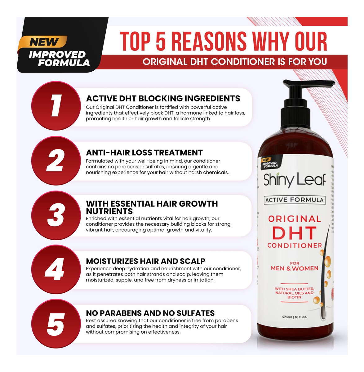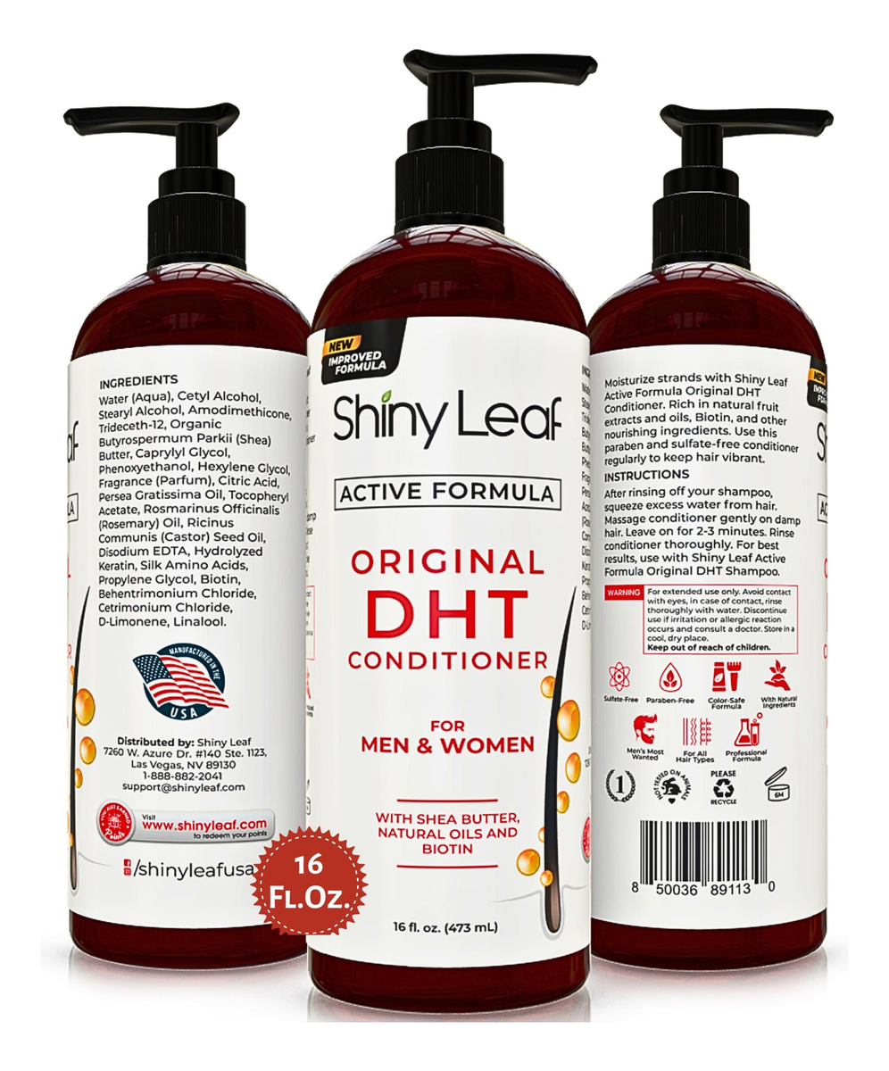 O condicionador bloqueador de DHT Shiny Leaf contém uma mistura potente de ingredientes bloqueadores de DHT, bem como componentes nutritivos para o cabelo. Esta fórmula incrível mantém os folículos capilares saudáveis, produzindo fios mais grossos e fortes. Better Than Your Normal Conditioner Os ingredientes bloqueadores de DHT aumentam sua rotina de cuidados com o cabelo quando você usa o condicionador de crescimento capilar Shiny Leaf Active Formula DHT Blocker. Sabe-se que os extratos de alecrim e chá verde encontrados em cada frasco deste incrível condicionador bloqueiam o DHT. O DHT é um hormônio conhecido por ser responsável pela queda e queda de cabelo. Eles atacam os folículos pilosos, fazendo com que eles encolham e acabem morrendo. Quando isso acontece, o cabelo fica mais fino até que não haja nenhum. O bloqueio do DHT efetivamente mantém os folículos saudáveis para que eles continuem a criar novos cabelos. Condicionador DHT hidratante Shiny Leaf DHT Blocker O condicionador de perda de cabelo para homens e mulheres é preenchido até a borda com ingredientes que hidratam o cabelo e o couro cabeludo. Óleo de rícino, manteiga de karité e aminoácidos de seda são apenas alguns dos muitos componentes que mantêm o cabelo macio e suave. Adicione vitamina E e extratos vegetais naturais à mistura e você terá cabelos saudáveis e brilhantes. Outras características do condicionador bloqueador de DHT Shiny Leaf Este condicionador bloqueador de DHT faz mais pelo cabelo do que apenas combater a queda e a queda de cabelo. Algumas de suas características incríveis incluem: Fórmula sem parabenos e sulfatos Não testada em animais Fortalece o cabelo da raiz às pontas Hidrata o cabelo para combater o crespo e o ressecamento – CONDICIONADOR BLOQUEADOR DE DHT O bloqueio do DHT é a chave para acabar com os problemas de queda e queda de cabelo. O condicionador bloqueador de DHT Shiny Leaf bloqueia eficazmente o DHT para que o cabelo permaneça saudável e delicioso. – SOLUÇÃO ANTI-QUEDA DE CABELO Nutre o cabelo com vitaminas e minerais para manter cada fio forte e livre de quebras. Use nosso condicionador bloqueador de DHT anti-queda de cabelo para ver a diferença entre homens e mulheres – CABELOS MACIOS E MACIOS Obtenha cabelos lindos com a ajuda do condicionador de crescimento capilar Shiny Leaf DHT Blocker. Repleto de extratos vegetais naturais, este condicionador elimina o frizz para que o cabelo permaneça brilhante e macio. – HIDRATA O CABELO E O COURO CABELUDO Nosso condicionador bloqueador de DHT contém vitamina E e óleo de rícino que trabalham duro para manter o cabelo hidratado e livre de danos. – SEM PARABENOS E SULFATO Criamos produtos com ingredientes que não prejudicam seus cabelos e retiram a cor do cabelo. Você não encontrará parabenos ou sulfatos em nossos produtos para o cabelo.