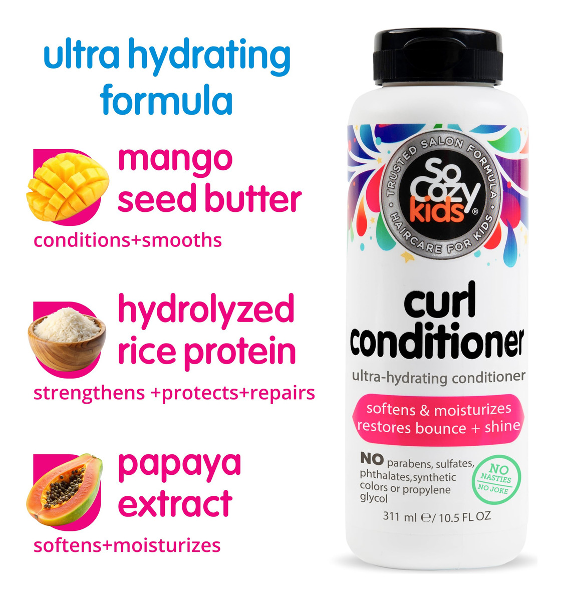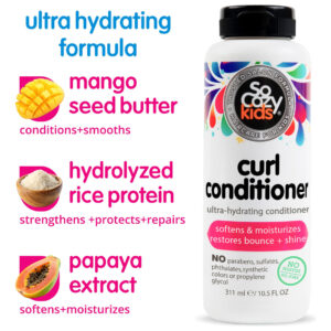 O condicionador SoCozy Curl para crianças com cabelos encaracolados (10,5 oz, pacote com 2) ajuda a suavizar cachos secos e rebeldes, condicionador e desembaraçador de cabelo com manteiga de semente de manga, proteína de arroz e extrato de mamão, sem parabenos — Suaviza e hidrata: especialmente desenvolvido para o cuidado do cabelo infantil, este condicionador profundo suaviza e melhora até os cachos mais secos ou indisciplinados, mantendo o cabelo saudável. Nosso condicionador de cabelo encaracolado ajuda a controlar o frizz, restaurando a elasticidade e o brilho – Cuidado suave e nutritivo: enriquecemos nosso condicionador infantil para cabelos cacheados com manteiga de semente de manga, proteína de arroz e extrato de mamão; ajudamos a reparar, fortalecer e proteger os cachos de seu filho, deixando-os mais hidratados, definidos e com aparência saudável – Fórmula para crianças: nosso condicionador para crianças facilita o manuseio dos cachos ao desenrolá-los suavemente nós e emaranhados persistentes; ao contrário dos produtos para cabelos pesados, nosso condicionador desembaraçante infantil define os cachos sem deixá-los pesados, deixando os cabelos macios & Bouncy — Sem ingredientes desagradáveis: nossos produtos para cabelos encaracolados para crianças não contêm parabenos, sulfatos, ftalatos, formaldeído, cores ou corantes sintéticos, propilenoglicol, glúten, trigo e nozes. Formulado por especialistas especialmente para a pele sensível de seu filho – Salon Quality Haircare: obtenha cuidados capilares de qualidade profissional para seus filhos no conforto da sua casa com nosso condicionador ultra-hidratante infantil. SoCozy tem mais de 20 anos de experiência e conhecimento com cabelos infantis