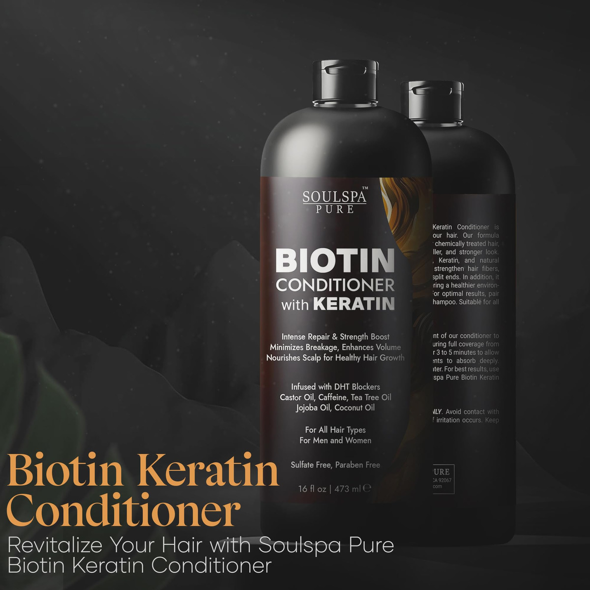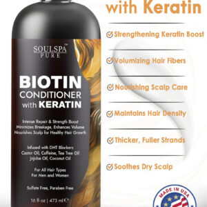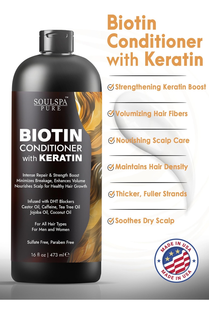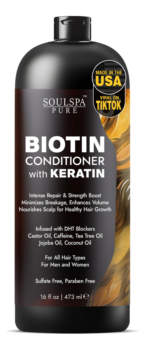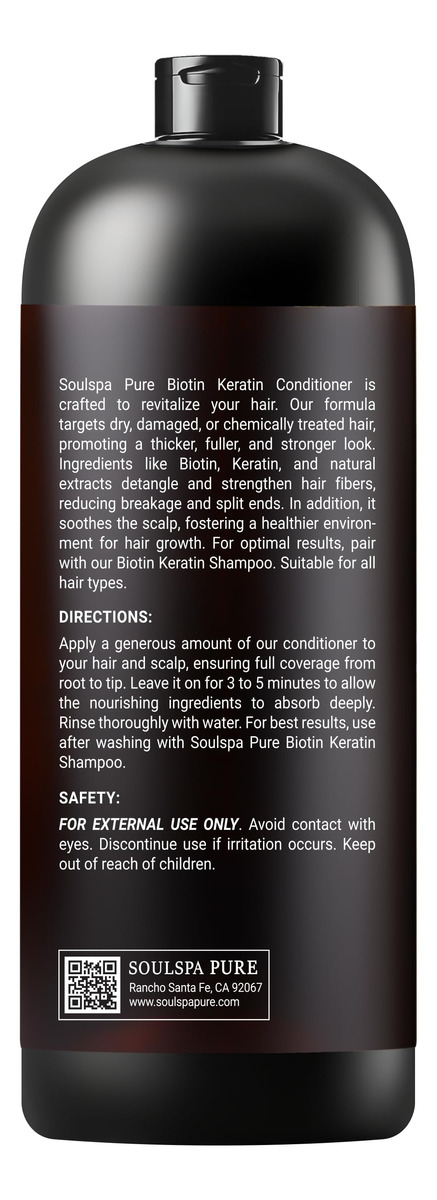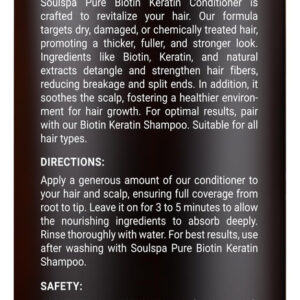 Experimente o melhor cuidado para seu cabelo com o condicionador de cabelo SOULSPA PURE Biotina com Queratina. Nossa fórmula nutritiva foi especialmente desenvolvida para rejuvenescer e restaurar cabelos secos e danificados, fornecendo hidratação e reparação essenciais. Este condicionador de biotina é um divisor de águas, oferecendo cuidados específicos para o crescimento e espessamento do cabelo, deixando suas madeixas mais cheias e vibrantes. Enriquecido com queratina, este condicionador serve como um luxuoso tratamento capilar com queratina, ajudando a reparar e fortalecer o cabelo por dentro. Ele doma o frizz, melhora a maleabilidade e deixa o cabelo visivelmente mais liso e manejável. Diga adeus aos fios secos e danificados e olá aos cabelos mais saudáveis e brilhantes. Formulado para atender mulheres e homens, nosso condicionador de biotina é perfeito para todos os gêneros e tipos de cabelo. Se você tem cabelos tingidos ou simplesmente deseja revitalizar seus cabelos, este condicionador oferece o cuidado nutritivo que seu cabelo merece. Ajuda a preservar tons vibrantes, garantindo que seu cabelo colorido permaneça lindo e vibrante. Descubra o segredo dos cabelos volumosos com nosso condicionador de biotina para o crescimento do cabelo. Infundido com biotina e outros ingredientes benéficos, promove o crescimento e a espessura do cabelo, dando ao cabelo uma aparência mais cheia e robusta. A ação condicionadora profunda fornece a hidratação intensa que seu cabelo precisa para uma aparência mais saudável e revitalizada. Mime seu cabelo com o poder transformador do condicionador de cabelo SOULSPA PURE Biotina com Queratina. Aproveite os benefícios de um tratamento capilar de nível profissional no conforto da sua casa. Revele cabelos mais fortes, saudáveis e bonitos a cada uso. Eleve sua rotina de cuidados com o cabelo com nosso condicionador de biotina para a melhor nutrição e cuidado -: Experimente o poder transformador do nosso condicionador de biotina. Enriquecido com queratina, fornece nutrição e hidratação profundas para cabelos secos e danificados, promovendo madeixas mais saudáveis e fortes. -: Nosso condicionador de biotina atende tanto mulheres quanto homens, oferecendo cuidados nutritivos para todos os tipos de cabelo. Aproveite os benefícios deste condicionador com infusão de queratina para cabelos lindamente revitalizados e condicionados. -: Ofereça ao seu cabelo um luxuoso tratamento capilar com queratina com nosso condicionador. Ajuda a reparar e fortalecer o cabelo por dentro, deixando-o visivelmente mais liso, mais manejável e cheio de vida. – -: Projetado para cabelos tingidos, nosso condicionador de biotina preserva tons vibrantes enquanto fornece hidratação e nutrição essenciais. Reviva seus cabelos com este condicionador especialmente formulado. – &: Descubra o segredo de cabelos volumosos e deliciosos com nosso condicionador de biotina. Enriquecido com biotina, ele fornece cuidados específicos para o crescimento e espessamento do cabelo, deixando seu cabelo com uma aparência mais cheia e vibrante
