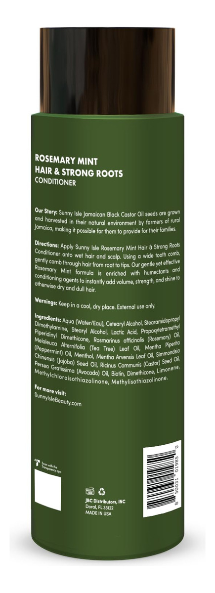 Condicionador Sunny Isle Rosemary Mint Hair & Strong Roots 12 onças | Fórmula anti-quebra e crescimento | Infundido com biotina e óleo de rícino preto jamaicano | Todos os tipos de cabelo – CONDICIONADOR PROFUNDO: O condicionador Sunny Isle Rosemary Mint Hair and Strong Roots é ultra-hidratante e desembaraçante. Nossa fórmula é infundida com biotina e óleo de rícino preto jamaicano; ambos são essenciais para a saúde geral do couro cabeludo e do cabelo. As proteínas do trigo ajudam a penetrar na haste capilar, protegendo contra quebras e queda de cabelo. O óleo de rícino preto jamaicano 100% puro e natural auxilia no tratamento do couro cabeludo seco e com coceira e auxilia em cabelos mais longos, fortes e profundamente nutridos. – INFUSÕES ESPECIAIS: Infundido com biotina e óleo de rícino preto jamaicano puro, este condicionador é formulado para estimular o crescimento do cabelo e rejuvenescer cabelos secos, quebradiços e danificados. – BENEFÍCIOS: suaviza e desembaraça instantaneamente. Suporta cabelos mais saudáveis e longos. Pode ser usado como uma fórmula Co-Wash e Anti-Fade. Aumenta a maleabilidade e promove um brilho saudável. – Sem sulfatos e parabenos: o condicionador Sunny Isle Rosmary Mint Hair and Strong Roots não contém sulfatos e parabenos. Nossa fórmula antidesbotamento torna este condicionador perfeito para cabelos tingidos. Maravilhoso aroma de menta. – TODOS OS TIPOS DE CABELO: Excelente para todos os tipos e texturas de cachos e mechas.