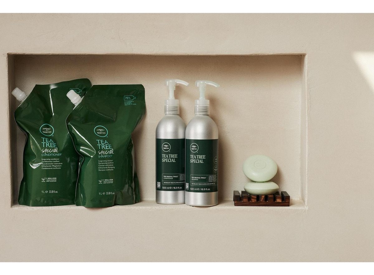Frasco de alumínio com condicionador especial Tea Tree, desembaraça, suaviza e suaviza, para todos os tipos de cabelo, 16,9 onças – A mistura botânica hidratante ajuda a suavizar, suavizar e combater os emaranhados – O formigamento refrescante revigora o couro cabeludo – Melaleuca, hortelã e lavanda revigoram o couro cabeludo e deixam o cabelo com um ótimo cheiro. A lavanda deixa o cabelo cheiroso – Segura a cor, ideal para todos os tipos de cabelo