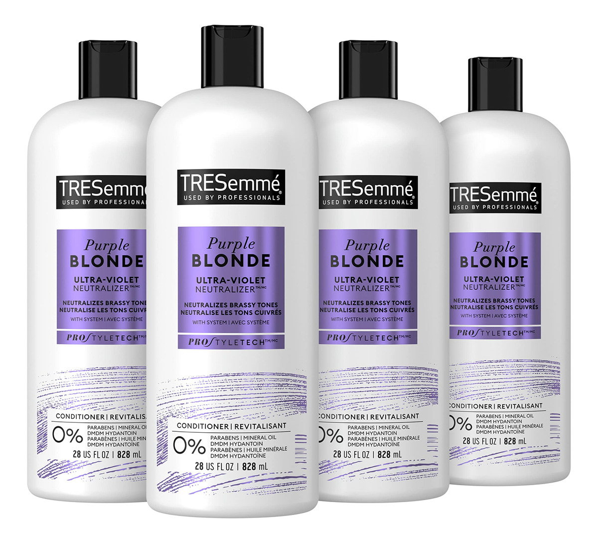 Condicionador TRESemm Purple Blonde, 4 unidades, para cabelos loiros e prateados, formulado com tecnologia neutralizadora ultravioleta de 28 onças — Com neutralizador ultravioleta: este condicionador roxo para cabelos loiros ou prateados é formulado com tecnologia neutralizadora ultravioleta para banir e eliminar tons de bronze — Cor fresca e brilhante: o condicionador TRESemme Purple Blonde elimina o latão para recarregar sua cor, deixando você com uma cor fresca e brilhante loira que você quer. Adequado para cabelos loiros e cabelos prateados – INGREDIENTES CONFIÁVEIS: Este condicionador de cabelo para cabelos tingidos ou loiros é certificado pela PETA e é livre de parabenos, óleo mineral e hidantoína DMDM – TECNOLOGIA PRO STYLE: Formulado com aminoácidos e ceramida, este condicionador de cabelo para salão de beleza torna o cabelo duas vezes mais forte e mais manejável com uso contínuo versus um shampoo sem condicionamento – MAIS DO QUE VOCÊ AMOR: Com este condicionador roxo, você pode desfrutar mais da fórmula de qualidade de salão que você adora, agora em um frasco maior de 28 onças