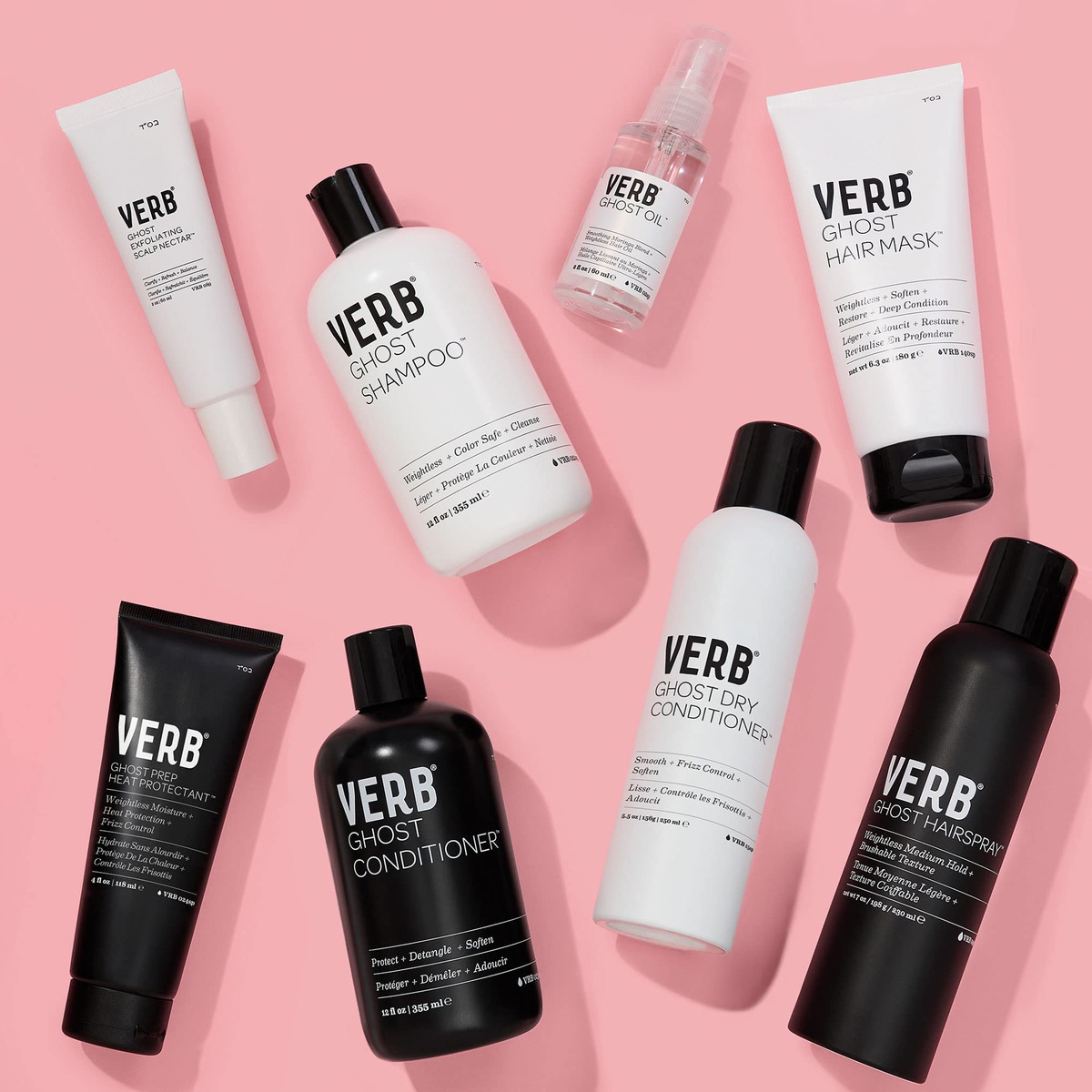 Condicionador VERB Ghost, 12 fl oz — CONDICIONADOR FORTALECEDOR: o condicionador leve Verb Ghost protege e fortalece os cabelos finos enquanto suaviza, desembaraça e suaviza o frizz; o condicionador hidratante promove brilho radiante para todos os tipos de cabelo – INGREDIENTES: O óleo de moringa no condicionador leve nutre e suaviza o crespo, o extrato de semente de girassol fornece proteção solar, o extrato antioxidante de chá verde protege e a semente de jojoba O óleo retém a umidade — SOMENTE COISAS BOAS: este condicionador sem parabenos, sem glúten e sem sulfatos nocivos é vegano e cruel gratuito; fabricado nos EUA, o condicionador profundo é seguro para uso em cabelos tingidos e tratados com queratina – COMO USAR: Depois de lavar o cabelo com o shampoo Verb Ghost, aplique o condicionador antifrizz nos cabelos limpos e úmidos e deixe por 3 a 5 minutos antes de enxaguar; siga o condicionador de cabelo fino com óleo Verb Ghost conforme necessário – GHOST HAIRCARE: este condicionador profundo faz parte da coleção Verbs Ghost para cabelos finos e fáceis de pesar cabelos soltos; os produtos Ghost Hair são adequados para uso em todos os tipos de cabelo