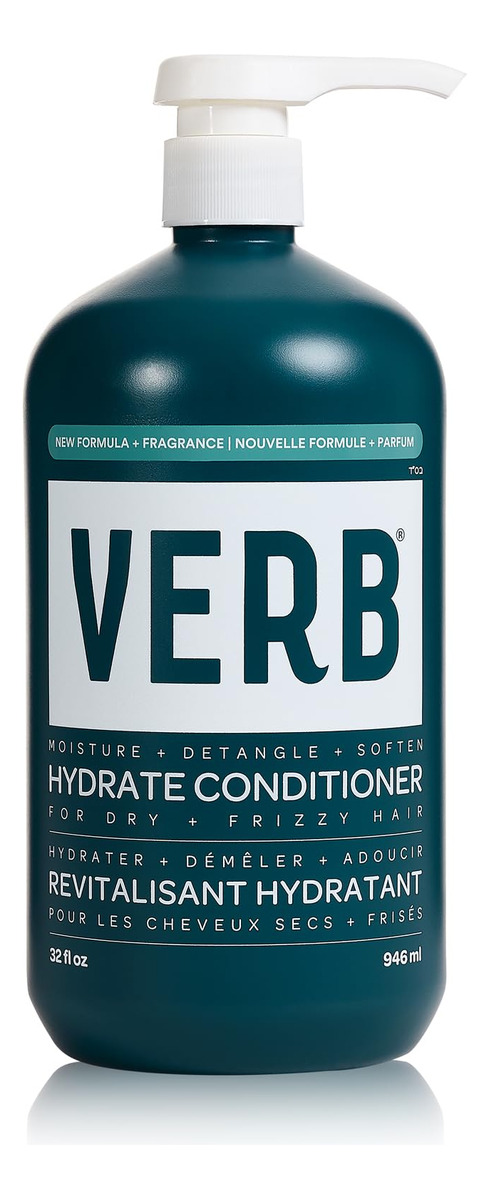O condicionador VERB Hydrate desembaraça cabelos secos e crespos para reduzir o crespo e hidratar o cabelo, 32 onças – HIDRATAÇÃO INTENSA: O condicionador Verb Hydrate fornece hidratação intensa e é formulado para deixar o cabelo macio, suave e sem emaranhados. – CONTROLE DO FRIZZ: comprovadamente reduz o frizz em 77% e o cabelo fica 7 vezes mais hidratado após apenas um uso*. *resultados comprovados em um laboratório de testes terceirizado ao usar a coleção completa Verb Hydrate. – INGREDIENTES PRINCIPAIS: Alimentado por óleo de argan rico em antioxidantes; o óleo de babaçu fornece umidade profunda. Um complexo hidratante e de ceramida que bloqueia a umidade ajuda a suavizar o cabelo, promover brilho e aumentar a elasticidade do cabelo para um cabelo saudável e hidratado. – PARA QUEM SERVE? : O condicionador e shampoo Verb Hydrate nutrem o cabelo para promover brilho e maciez em cabelos secos, crespos, danificados, estilizados demais e até tratados com cores. – SOMENTE AS COISAS BOAS: O condicionador Verb Hydrate é sem parabenos, sem sulfato, sem silicone, com certificação Peta, sem crueldade, vegano e fabricado nos EUA. O condicionador Hydrate fornece nutrição profunda e enriquece para restaurar, reparar e suavizar cabelos quebradiços