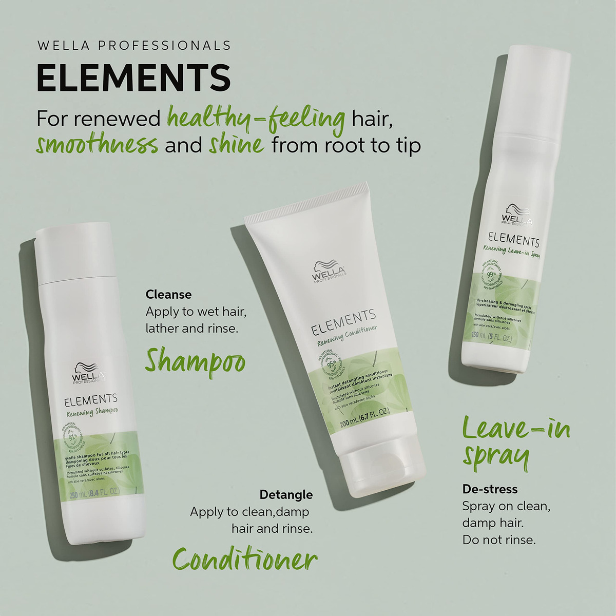 Condicionador de renovação suave WELLA PROFESSIONALS Elements, condicionador suave sem silicone e desembaraçante instantâneo, para todos os tipos de cabelo, 6,7 onças – Condicionador renovador Wella Professionals Elements: um condicionador hidratante especialmente formulado sem silicones e feito com até 99% dos ingredientes de origem natural – Formulado sem sulfatos, silicones – Livre de ingredientes de origem animal – Fragrância limpa – Testado dermatologicamente – Adequado para tratamento de cores, queratina cabelos tratados ou quimicamente tratados