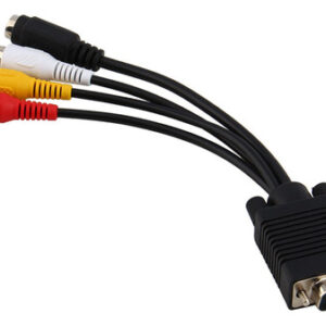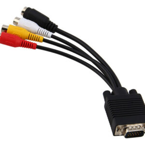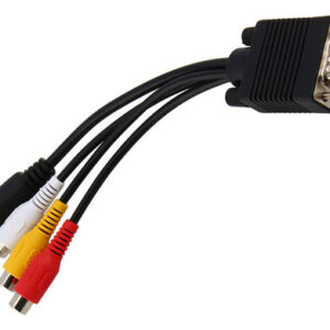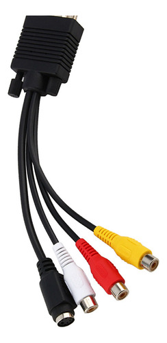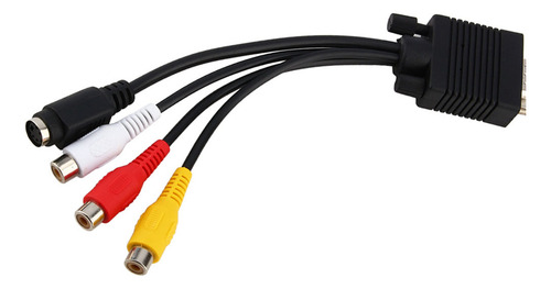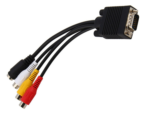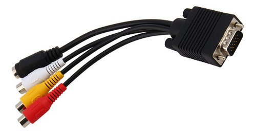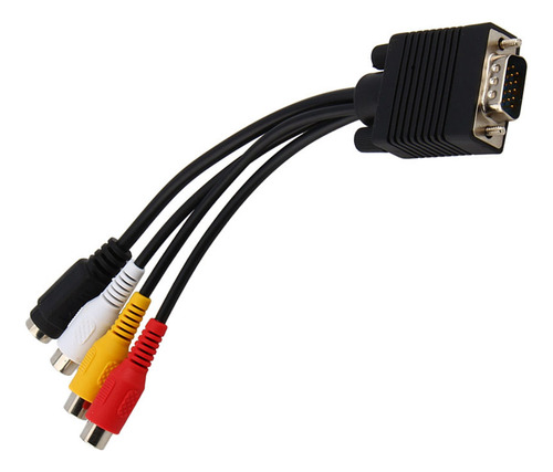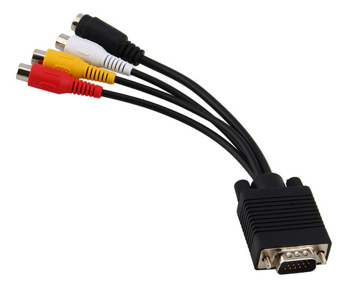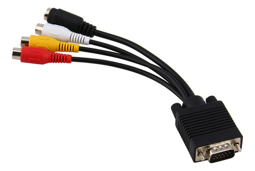 : D-Sub macho de 15 pinos de alta densidade para S-Video mini din fêmea de 4 pinos e conector RCA.