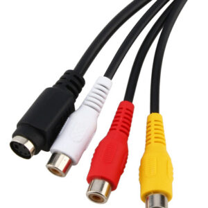 RCA de saída de vídeo (TV) e conectores de saída S-Video na outra extremidade. Conector