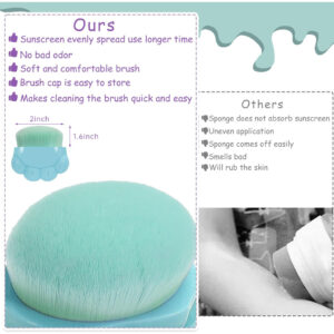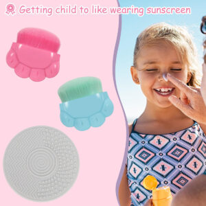 Especificações Cor: rosa, azul Material: fibra, plástico, silicone O pacote inclui 2 aplicadores de protetor solar para crianças com estojo 1 x almofada de limpeza com escova – Listas de embalagem: você receberá 2 pacotes de aplicadores e uma almofada de silicone de limpeza. O pincel aplicador de protetor solar vem com um estojo, fácil de transportar, atendendo às suas necessidades de uso! – Conjunto aplicador de protetor solar para crianças: o aplicador Sunblock Buddy foi projetado principalmente para crianças, as cabeças da escova são feitas de fibra de alta qualidade, são confortáveis e macias, têm melhor elasticidade, não são fáceis de cair, a alça é feita de plástico de qualidade, superfícies lisas, adequadas para crianças agarrarem. – Fácil de limpar: a escova aplicadora de protetor solar pode ser usada por uma ou duas crianças, a almofada de limpeza de silicone é benéfica para ajudá-lo limpar o pincel melhor, com rapidez e eficiência. – Mais fácil de aplicar protetor solar: este pincel de protetor solar não é fácil de absorver protetor solar, muito macio e suave, tornando a aplicação mais uniforme. É melhor do que os tradicionais aplicadores de protetor solar rolantes e economiza mais protetor solar. – Amplamente aplicável: ideal para uso familiar, aplicar protetor solar com as duas mãos quando estiver ao ar livre, não apenas difícil de espalhar, mas também fácil de sujar. Com este aplicador de protetor solar pode ser a solução perfeita para o problema, a alça é confortável de segurar, você pode controlar o efeito da aplicação com precisão e reduzir a bagunça. Além disso, o pincel também pode ser usado para aplicar outros cosméticos.