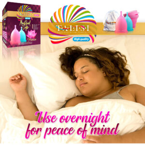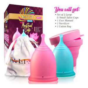 Get Through Your Periods Without Leaks or Worries With TALISI Reusable Menstrual Cups Set! We combine an innovative design with quality medical grade silicone to provide you with safe, soft and reusable menstrual cups that are better than traditional tampons and pads in every way to change the way you think about periods for good. TALISI flexible menstrual cups are designed to be inserted inside where they act as a seal between the vaginal walls to collect menstrual flow for up to 12 hours while eliminating the risk of any leaks or accidents so you can live without worrying. Thoughtfully Designed With Comfort & Safety In Mind For All Day Wear Worried about irritation and vaginal dryness? Dont be! Unlike traditional menstruation products, TALISI 2 period cup set is made using only medical-grade silicone without using any harsh chemicals, BPA or plastics so you can safely wear it all day. Our silicone sanitary cups are ideal for wearing whether youre at home, working at the office, running on the field or playing sports and more to keep you protected. We also include a carrying bag so you can take it with you anywhere you go. Features Youll Love: – They are a cost-friendly choice for women that dont want to keep spending on tampons – Designed to keep you comfortable without causing dryness – Each pack comes with a small and large menstrual cup to handle regular and heavy menstrual flow – It can easily be inserted and removed by holding the easy grip rim – They are durable and maintain their softness and shape to provide long term use Package Includes: 1 x Small Menstrual Cup 1 x Large Menstrual Cup 1 x Cotton Menstrual Cup Bag 1 x User Manual 1 x Foldable Sterilizer Cup Container Sanitizer Dont Let Periods Stop You From Doing What You Want With TALISI Reusable Menstrual Cups! – We only use 100% medical grade silicone to make our feminine menstration cups to handle daily use – Our feminine products are flexible and soft so you can comfortably wear wash them throughout the day – Easy to insert and remove the silicone cup menstrual stay in place to collect up to 12 hours of flow – Set includes sterilizing menstrual cup holder cleaner provides effortless cleanup for long term use – Feminine soft period cup for beginners can be used by teens or post childbirth heavy flow low cervix – Reusable Menstrual Cup Small & Large Set of 2, 100% Soft Silicone, Coupe Menstruelle – Safe Period Cup, Heavy & Light Flow, Feminine Hygiene, Tampons, Pads & Disc Alternative – Designed for comfort, our period cup is flexible, soft, and easy to insert and remove with an adjustable stem – Soft Menstrual Cup – Best Sensitive Reusable Period Cup – Wear for 12 Hours – Tampon and Pad Alternative – Reusable Period Cup: Say goodbye to tampons and pads with comfortable, eco-friendly protection