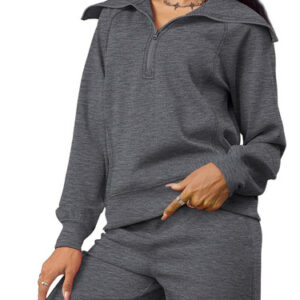 Roupas de viagem para mulheres, conjuntos de 2 peças, conjuntos de lounge, moletom cinza escuro M — Observação: embalado a vácuo pode causar rugas nos conjuntos, mas lavá-los ou passar a ferro os refrescará. — Características: moletom grande de manga comprida com meio zíper e calça de moletom grande com cordão de cintura alta. Ajuste descontraído, sem capuz, de cor sólida. — Ocasião: adequada para exercícios, exercícios, exercícios, corrida, corrida, ciclismo, compras casuais, férias, roupas esportivas, etc. Confortável de usar no outono e inverno. — Combina: pode ser vestida com botas ou tênis e pode ser usada como um conjunto ou como se separa para uma variedade de ocasiões. Um design fácil, aconchegante e chique para uma abordagem descontraída e descontraída de se vestir. – Cuidados com as roupas: lavar à máquina ou à mão com água fria/pendurar ou secar no varredo/Sem alvejante/Não lavar a seco/passar a ferro quente, se necessário.