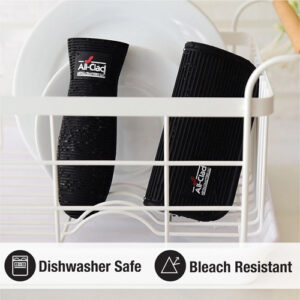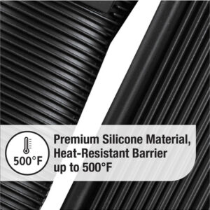 Conjunto de alças de silicone totalmente revestidas: 100% silicone flexível e resistente ao calor — Perfeito para ferro fundido, aço ou vidro (2 peças), preto/cinza — SILICONE RESISTENTE AO CALOR: Feitas com material de silicone premium, essas alças de frigideira fornecem uma barreira confiável e resistente ao calor contra temperaturas de até 500 (260), permitindo que você manuseie panelas, frigideiras e assadeiras quentes com facilidade e confiança. – ERGONÔMICO CONFORTÁVEL DESIGN: Projetadas pensando no conforto, essas alças panorâmicas apresentam formato ergonômico e superfície texturizada para uma aderência antiderrapante segura e confortável, reduzindo a fadiga das mãos e proporcionando maior controle durante o cozimento. – Ajuste universal: com um design flexível e elástico, essas alças de silicone deslizam facilmente sobre a maioria das alças de utensílios de cozinha padrão, incluindo as da All-Clad e de outras marcas populares, garantindo sempre um ajuste confortável e seguro. – PROTEJA SUAS MÃOS E SUPERFÍCIES: diga adeus às queimaduras e derramamentos! Essas alças de silicone funcionam como uma barreira protetora entre suas mãos e utensílios de cozinha quentes, bem como entre suas panelas e frigideiras e superfícies delicadas, como bancadas e tampos de mesa. – Fácil de limpar e manter: limpar é muito fácil! Basta enxaguar as alças da panela em água morna ou jogá-las na máquina de lavar louça para uma limpeza rápida e conveniente, mantendo seus utensílios de cozinha higiênicos e prontos para a próxima aventura culinária. Eles são resistentes ao alvejante e podem ser lavados na máquina de lavar louça.
