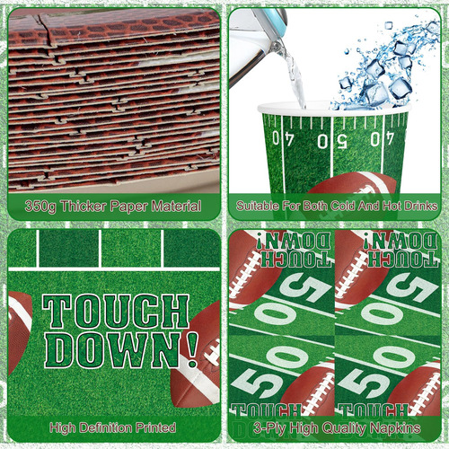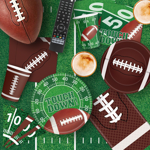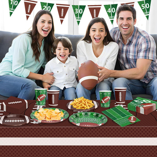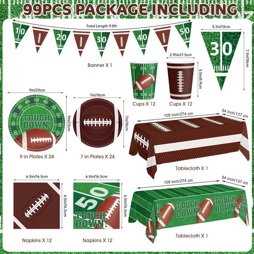 Você quer ter uma impressionante festa de aniversário de futebol de 2025? O kit de talheres de futebol Litmirfu 99Pcs atenderá a todas as suas necessidades. Este conjunto de decorações esportivas para festas de aniversário será o centro das atenções na festa, seus filhos e sua família vão adorar! Informações sobre o produto: Nome do item: 99 peças de pratos de festa de futebol, guardanapos de almoço, banner para touchdown, copos, toalhas de mesa de campo de futebol Material: papel/plástico Características: duráveis/resistentes ao desbotamento/liso Gênero: homens/mulheres/meninas/crianças/adultos Cor: verde/marrom/branco/misto Forma de cor: redondo/quadrado/retangular Ocasião: noite de jogo de futebol interior/exterior/casa/cozinha Pacote de fazenda/sala de estar/piquenique/churrasco, escola, sala de aula/jardim/praia/vários pacotes de festas de fim de ano: total de 99 unidades, incluindo: pratos de jantar pesados de 9" * 24 pratos de sobremesas pesadas de 7" * 24 descartáveis de 9 onças Copos de papel* 24 guardanapos descartáveis de 6,5" x 6,5" * 24 bandeiras de futebol fantasia de 9,8 pés* 1 toalha de mesa descartável de futebol de 54" x 108"* 2 – Suprimentos para festas de futebol – serve 24 – O conjunto de suprimentos para festas de futebol inclui itens para 24 convidados, 24 peças de pratos de jantar de futebol de 9 polegadas, 24 peças de sobremesas de futebol de 7 polegadas, 24 peças de xícaras de 9 onças em 2 estilos, 24 peças de guardanapos de futebol 6,5 “x 6,5" dobradas, em 2 estilos, 2 peças de toalhas de mesa de futebol de plástico de 54 x 108 polegadas em 2 estilos, 1 peça de banner de futebol. Total de 99 peças, fornecendo todos os acessórios essenciais para festas de futebol em um único pacote, o que evita o trabalho de selecionar cada item individualmente – Inspiração no design de futebol – esses pratos e guardanapos de futebol, copos de futebol, toalhas de mesa de futebol e banner de dia de jogo de futebol desenhados com fundo verde cor de grama e padrão de bolas de futebol. A combinação de verde, branco e marrom e o “TOUCH DOWN!” marque palavras esportivas e proporcionará uma festa de futebol cheia de atmosfera de jogo de futebol, tornando-a atraente e criando uma cena de festa vibrante e empolgante com tema de futebol – Material seguro e confiável – Os pratos e copos de papel de futebol são feitos de papel pesado de qualidade alimentar, impresso com tintas à base de água de qualidade alimentar, adequadas para contato com alimentos. Os guardanapos de papel de futebol são feitos de material de papel de alta qualidade, macio e altamente absorvente. As capas retangulares de mesa de futebol são feitas de material plástico espesso com laminação à prova d'água, garantindo a durabilidade de armazenar mais alimentos e tornando-as difíceis de rasgar ou quebrar – Fácil de limpar – Nosso kit de decoração para festas de futebol é um item de mesa descartável que evita o trabalho de lavar pratos e permite que você desfrute de mais momentos felizes com seus convidados, familiares e amigos, economizando tempo e esforço. Tudo o que você precisa fazer depois da festa de aniversário do futebol é jogar fora essas louças descartáveis junto com a toalha de mesa de plástico, o que é muito conveniente. Combinamos as lembrancinhas de futebol de que você precisa ao mesmo tempo. Faça você se apaixonar por dar festas! – Aplicação ocasional – Seja para uso diário ou ocasiões especiais, nosso conjunto de decoração de mesa de futebol é a escolha perfeita. Ótimo para toda a família se reunir para diversão, almoços, jantares, festas de futebol universitário, festas de aniversário temáticas esportivas, atividades esportivas escolares, festas de draft de futebol fantasia, festas à porta traseira e muito mais. Além disso, oferecemos suporte de atendimento ao cliente 24 horas. Se você tiver dúvidas sobre nosso suprimento para festas de touchdown de futebol, entre em contato conosco e resolveremos o problema imediatamente