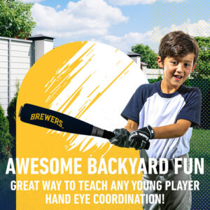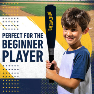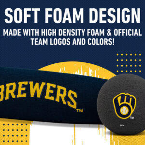 Franklin Sports MLB Milwaukee Brewers Team Jumbo Foam Bat and Ball Set, 21-Inch, Blue – The MLB Oversized Foam Bat & Ball is perfect for the beginner player – Made with high density foam & official team logos and colors! – Support your favorite MLB team and watch your little leaguer swing for the fences – Great way to teach any young player hand eye coordination, Awesome backyard fun! – 21 jumbo bat and ball set, Recommended ages 3+ – Rubber foam material – 4 PU foam ball – Perfect for showing your support for your favorite team