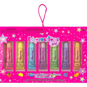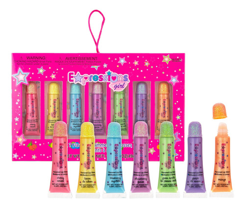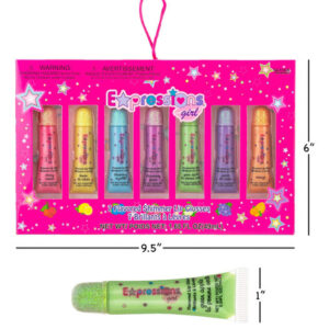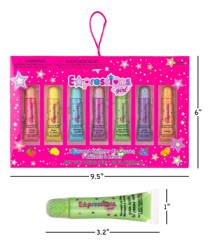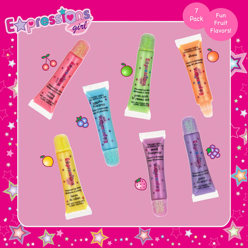 Conjunto de brilho labial colorido à prova d'água Expressions de 7 peças para mulheres e meninas – 7 peças de brilho labial Flaved Shimmer Girls da Expressions Girl Um pacote de brilho labial pronto para presente com 7 brilhos labiais Squeeze Tube em diversos sabores frutados. – Sabores frutados – Nossos pacotes de brilho labial Roll On vêm em uma variedade de sabores suculentos de frutas, incluindo: cereja, Limão, mirtilo, morango, maçã verde, uva, laranja — seguro e não tóxico Nosso kit de brilho labial não é tóxico, nunca foi testado em animais, lavável e seguro para peles sensíveis. Para remover, use água e sabão neutro – Hidratação nutritiva Este conjunto de brilho labial para meninas é formulado com óleo mineral para um acabamento suave e rico em umidade. – A partir de 5 anos – Este conjunto de brilho labial para crianças não se destina a crianças menores de 5 anos.