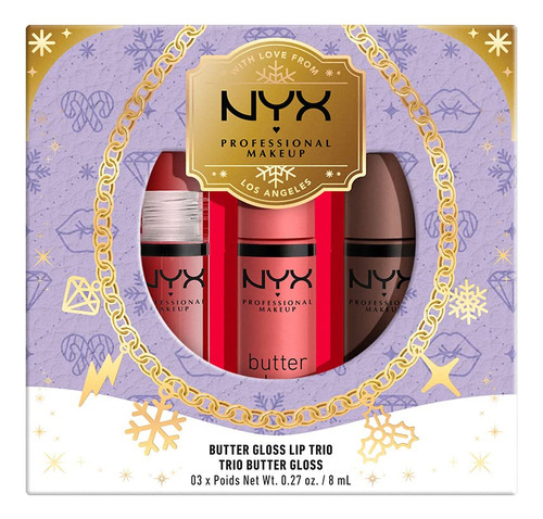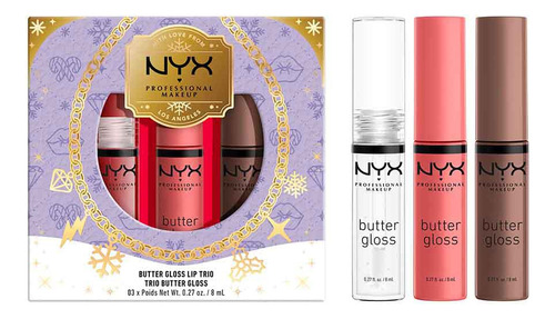 Se você foi travesso ou simpático, o NYX Professional Makeup Butter Gloss Trio certamente o colocará na lista de vilões! Passe manteiga nesta temporada de festas com três tons clássicos cult de Butter Gloss. Um trio que qualquer um adoraria encontrar em suas meias! Aplique um toque do hidratante Butter Lip Gloss nos lábios para obter um brilho deslumbrante e um sabor irresistível. Misture e combine esses tons versáteis e complementares para combinar com cada clima de férias. Edição limitada. Livre de crueldade. BLG54 SUGAR GLASS BLG05 CREME BRULEE BLG48 CINNAMON ROLL – Marca: Nyx professional makeup – Marca: NYX PROFESSIONAL MAKEUP – Tipo de acabamento: Brilhante – Tipo de pele: Tudo – Tom de pele: Todos – Descrição da faixa etária: Adulto