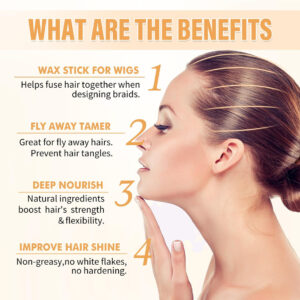 Defina seu estilo com nosso bastão de cera para cabelo, uma ferramenta multifuncional e fácil de usar, projetada para fornecer uma forte aderência, textura e superfície lisa, deixando uma impressão incrível e duradoura no cabelo! O pacote inclui: bastão de cera para cabelo* 1 creme para acabamento de cabelo* 1 elástico para fusão frontal de renda* 2 escova de cabelo Teasing Hair* 1 pente de rabo de rato* 1 escova de bordas* 1 – Melhor conjunto de produtos para cabelo. Você ganha 1 bastão de cera de cabelo de 2,7 onças, 1 bastão de acabamento de cabelo de 0,5 onças, 3 pentes para modelar cabelo e 2 faixas elásticas para perucas. Este é um conjunto de ótima relação custo-benefício que funciona em conjunto para lidar com todas as áreas de cabelos rebeldes e manter seu estilo suave o dia todo. Ferramentas de modelagem de cabelo de alta qualidade. O conjunto de pentes modeladores de cabelo é ideal para organizar e suavizar o controle de bordas, cabelos soltos e cabelos de bebês. O elástico fornece proteção segura para a peruca e a mantém no lugar, perfeito para resolver situações embaraçosas, como queda de cabelo. Natural e seguro. Feito de ingredientes naturais, como óleo de semente de Vitis vinifera (uva), óleo de abacate, etc., é naturalmente não irritante e adequado para todos os tipos de cabelo. Livre de crueldade e sem álcool — Leve e portátil. O bastão de cera para cabelo tem um design compacto, simples de usar e fácil de transportar, adequado para vários estilos de cabelo e sempre mantém o cabelo liso e arrumado. O bastão finalizador de cabelo também pode melhorar o brilho do cabelo, suavizar o cabelo e evitar que se solte. A cera de cabelo liso para trás dura para modelar e controlar as bordas do cabelo, e o tempo de modelagem é muito longo. Ideal para competições de dança, conferências, apresentações, danças e muito mais, o bastão finalizador de cabelo certamente o satisfará com seus efeitos duradouros