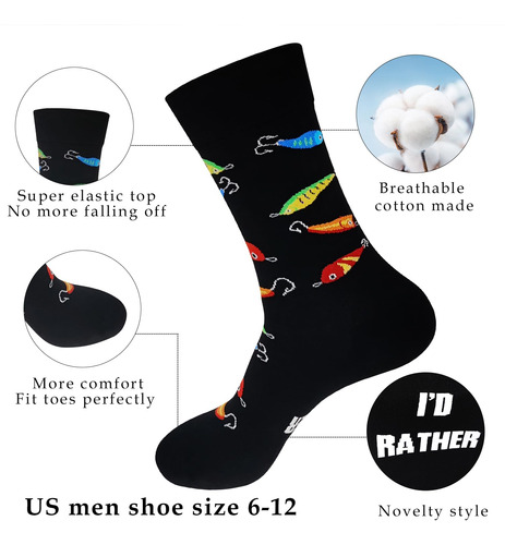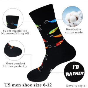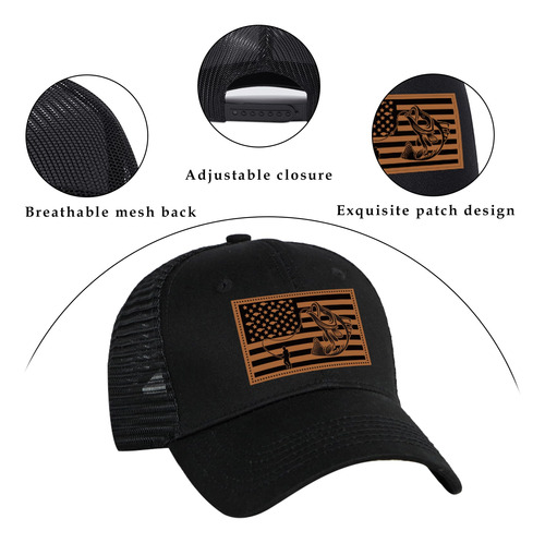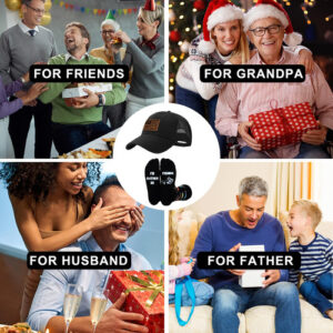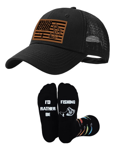 O pacote inclui um boné de caminhoneiro e um par de meias. Material: O chapéu é feito de algodão e poliéster; as meias são feitas de algodão, poliéster e elastano. Tamanho: Chapéu: ajustável; circunferência 55-60 cm/21,6-23,6. Meias: tamanho único. – Cool Men Trucker: a frente do chapéu é feita de algodão premium; confortável e protetora solar; a parte traseira é feita de poliéster com orifícios de ventilação para manter a cabeça fresca e respirável durante explorações ao ar livre – Tamanho único: um fecho traseiro se aplica à parte de trás do boné, tornando o boné ajustável para caber na maioria dos tamanhos de cabeça – Chapéu de pesca Novelty: o chapéu de caminhoneiro é inovador no estilo da bandeira americana; ótimo para pescar amantes, pescadores; definitivamente um ótimo presente para seu amado pai, filho, marido, avô, namorado, noivo e aqueles que amam pescar – Junto com meias engraçadas: as meias inovadoras são extremamente macias com palavras engraçadas na parte inferior das meias; algodão respirável e tamanho único mantém os pés aquecidos e aconchegantes. Ideia incrível de presente: recomendamos este conjunto de boné e meias de beisebol como presente legal ou para homens durante o Dia dos Namorados, Ação de Graças, Natal, Dia dos Pais, Dia dos Avós, etc.