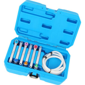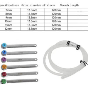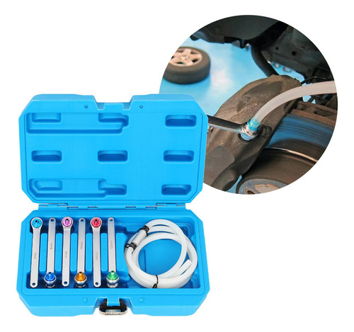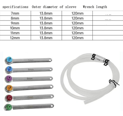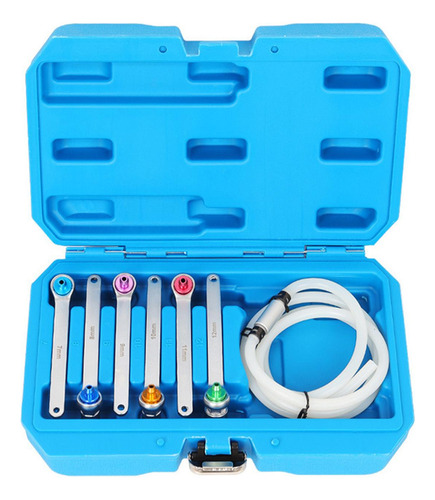 6 chaves de purga de freio Tamanhos 7 mm, 8 mm, 9 mm, 10 mm, 11 mm, 12 mm (0,27, 0,31, 0,35, 0,39, 0,43 , 0,47), todos de 12 pontos com adaptadores Informações de tamanho: A caixa de armazenamento mede cerca de 27,5 cm x 17,5 cm x 7 cm/10,83 polegadas x 6,89 polegadas x 2,76 polegadas. Os sangradores de freio são forjados em liga de aço de qualidade, alta dureza e estrutura robusta. Mangueira de