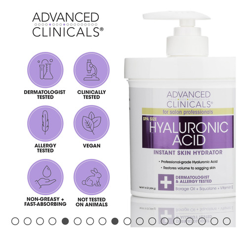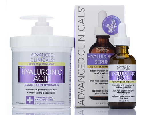 O conjunto antienvelhecimento de ácido hialurônico da Advanced Clinicals vem com creme de dia hidratante instantâneo e soro facial antienvelhecimento. O creme de spa grande é suave o suficiente para ser usado como hidratante facial e grande o suficiente para ser usado como loção corporal ou hidratante. O sérum facial hialurônico contém beta-glucana para promover uma pele saudável, reduzindo os danos dos radicais livres e promovendo clareza na pele e nos poros. Esta alternativa suave aos tratamentos prescritos é resistente a rugas e linhas finas e, com o uso diário, sua pele se transformará em uma tez mais limpa, clara, firme e radiante. – CREME DE ÁCIDO HIALURÔNICO O ácido hialurônico é uma substância natural encontrada em nossa pele que ajuda a mantê-la hidratada e gorda. À medida que envelhecemos, a quantidade de ácido hialurônico em nossa pele diminui, levando a uma perda de firmeza e elasticidade. O ácido hialurônico é um umectante, o que significa que atrai água para a pele + ajuda a manter a pele hidratada para evitar ressecamento e escamação. O ácido hialurônico também pode ajudar a melhorar a textura e o tom da pele, proporcionando uma tez mais radiante e jovem. – HIDRATAÇÃO PROFUNDA DA PELE – O ácido hialurônico pode ajudar a reduzir a aparência de linhas finas, flacidez da pele e rugas, preenchendo e hidratando profundamente a pele, além de restaurar a elasticidade. Este creme de ácido hialurônico da Advanced Clinicals ajuda a hidratar e nutrir a pele, tornando-a mais suave para uma pele mais jovem e saudável. Esta loção corporal de ácido hialurônico levemente perfumada é altamente eficaz contra a redução da aparência de envelhecimento prematuro, rugas, pele seca, pele cremosa e muito mais. – FÓRMULA HIDRATANTE E TESTADA A loção corporal é infundida com ingredientes ativos poderosos como vitamina E, ceramidas, óleo de coco, manteiga de karité e aloe vera, que trabalham juntos para ajudar a nutrir, hidratar e dar volume à pele para uma pele mais saudável e cheia, e aparência mais jovem. Compatível com todos os tipos de pele, mesmo pele sensível, pele oleosa e pele propensa a acne. Fórmula testada por dermatologistas, testada em alergias e clinicamente testada, formulada para ser facilmente absorvida, deixando sua pele macia e suave. – HIDRATANTE DE ÁCIDO HIALURÔNICO – O ácido hialurônico promove a regeneração celular da pele, oferecendo hidratação extra e proteção contra a barreira cutânea, resultando em células mais saudáveis e uma tez mais vibrante. O ácido hialurônico ajuda a tornar a pele mais macia e volumosa, proporcionando uma tez mais radiante e jovem. O ácido hialurônico funciona como um hidratante muito eficaz para reduzir a aparência de tom de pele irregular, flacidez da pele, rugas, pés de galinha, estrias, cicatrizes, pele seca e muito mais. – Relaxe, hidrate, renove e restaure a fórmula sem crueldade, não oleosa e com pH balanceado. Livre de: parabenos, álcoois secantes, ingredientes de origem animal, PEGs, sulfatos, corantes, propilenoglicol e talco. Fabricado em nosso laboratório regulamentado e inspecionado pela FDA em Chicago, Brasil. Estamos confiantes de que você vai adorar a forma como este creme corporal de ácido hialurônico da Advanced Clinicals com soro facial de ácido hialurônico dá aparência e sensação à sua pele, e garantimos nosso produto com uma garantia de satisfação