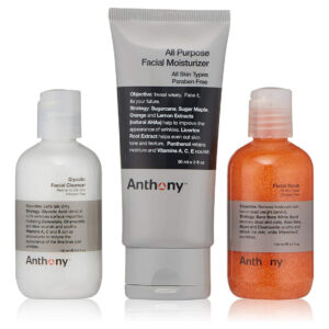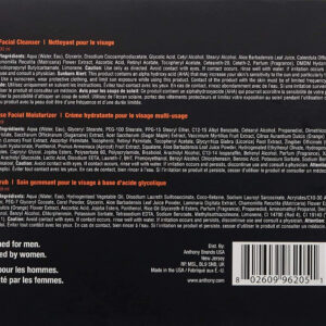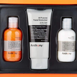O kit Anthony Face It & Go inclui limpador facial glicólico de 3,4 oz. Hidratante facial multiuso de 3 oz. Esfoliante facial de 3,4 fl oz. — Face it & Go! Nossos itens faciais mais vendidos em um kit de três peças para limpar, esfoliar e hidratar seu rosto. Perfeito para uso diário em casa ou para colocar na bolsa de ginástica e levar para qualquer lugar. Enfrente o futuro. – 1 limpador facial glicólico de 3,4 fl oz 100 mL: ácido glicólico da cana-de-açúcar, calêndula para ajudar a suavizar e curar, vitaminas A, C e E para fornecer proteção antioxidante. – Hidratante facial multiuso de 3 fl oz 90 mL: este hidratante facial de rápida absorção hidrata e nutre a pele. – 1 esfoliante facial de 3,4 fl oz 100 mL: este hidratante facial suave, mas eficaz O esfoliante esfolia a pele, remove a sujeira e ajuda a eliminar os pelos encravados para um acabamento limpo e uniforme. – Como usar: lave o rosto com limpador facial glicólico. Enxágue. Dispense uma quantidade de meio dólar de esfoliante facial nas mãos e massageie todo o rosto em movimentos circulares. Enxágue. Aplique o hidratante diário multifuncional na pele limpa e seca.