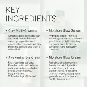 Oferece hidratação duradoura enquanto os probióticos equilibram o microbioma da pele para combater os sinais de envelhecimento prematuro. Os pigmentos que refletem a luz criam um brilho visível imediato para uma pele brilhante e com aparência saudável. – Para qualquer lugar ou para experimentar: a rotina de beleza vegana com até 98% de ingredientes de origem natural apoia uma barreira cutânea saudável e uma tez perfeita e vibrante, graças a um complexo pré e probiótico. – Os ingredientes ativos desses produtos diários para a pele são coordenados com precisão para promover um microbioma cutâneo equilibrado, impulsionar o nível de umidade da pele, dá um brilho natural e evita o envelhecimento prematuro causado por fatores ambientais.