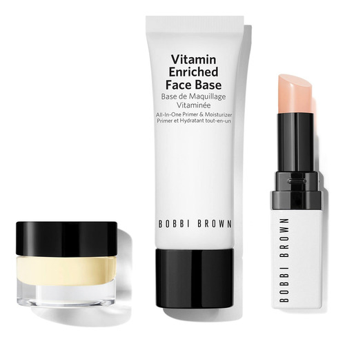 Conjunto Bobbi Brown de edição limitada Mini Must Haves Bare Skincare Trio. Um conjunto com três itens essenciais que adoram a pele para rosto, debaixo dos olhos e lábios em tamanhos prontos para viajar, para que você possa brilhar em qualquer lugar. Este conjunto contém: 0,17 fl oz/5 mL de base para olhos enriquecida com vitaminas, 0,5 fl oz /15 mL de base facial enriquecida com vitaminas, 0,02/,7 g de mini tonalidade labial extra em rosa puro (tom rosa puro). A Base Facial Enriquecida com Vitaminas nutre rapidamente, dá volume e prepara a pele para maquiagem, enquanto a Base de Olhos Enriquecida com Vitaminas hidrata, ilumina visivelmente e prepara a pele abaixo dos olhos para corretor e corretivo. O Extra Lip Tint oferece uma lavagem de cor e hidratação que realçam os lábios para restaurar, revitalizar e deixar os lábios visivelmente carnudos. – Conjunto Mini Must Haves Pink Skincare Skincare Trio Bobbi Brown – Um conjunto com três itens essenciais para rosto, debaixo dos olhos e lábios, em tamanhos prontos para viajar, para que você possa brilhar em qualquer lugar. – Este conjunto contém: 0,17 fl oz/5 mL de mini enriquecimento de vitaminas Base facial enriquecida com vitaminas de 0,5 fl oz (15 ml), mini tonalidade labial extra de 0,02/,7 g em rosa puro (tonalidade rosa puro). — A base facial enriquecida com vitaminas nutre rapidamente, dá volume e volume visíveis prepara a pele para maquiagem, enquanto a Base de Olhos Enriquecida com Vitaminas hidrata, ilumina visivelmente e prepara os olhos como corretor e corretivo. O Extra Lip Tint oferece uma lavagem de cor e hidratação que realça os lábios para restaurar, revitalizar e deixar os lábios visivelmente carnudos.