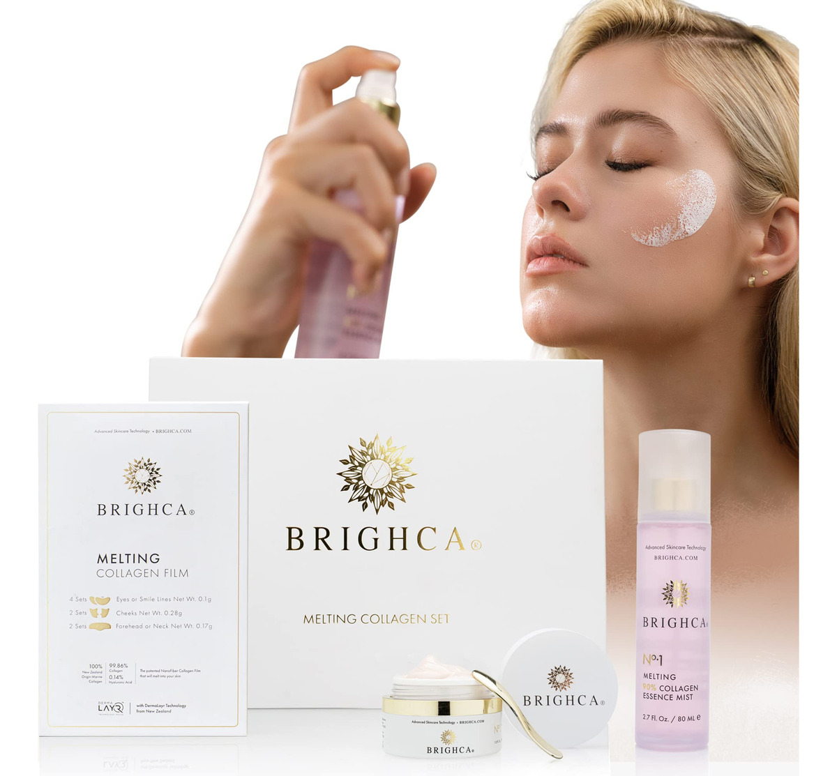 Descubra uma pele lindamente jovem, radiante e firme com o exclusivo sistema de tratamento de colágeno derretido de colágeno da Brighca (8 bolsas de tratamento): comprovado clinicamente que fornece o melhor colágeno de nanofibra 10 vezes mais profundo em minutos, prometendo efeitos duradouros e, ao mesmo tempo, melhorando a elasticidade e a firmeza das camadas dérmicas para obter benefícios de longo prazo para a pele que você pode ver e sentir em apenas duas semanas. Névoa de essência de colágeno que derrete 90% (fornecimento de 80 ml/45 dias): basta molhar, capturar e reabastecer os itens essenciais da pele enquanto restaura o brilho com nosso TriAqua Meder, que renova células. Este é o seu companheiro diário de pele, criado com precisão para aumentar a produção de colágeno e elastina e melhorar visivelmente a firmeza e elasticidade para uma pele mais radiante e úmida. Creme de colágeno 5 em 1 derretido (suprimento de 30 ml/45 dias): luxuoso creme de colágeno superfuncional formulado com 5 ingredientes bioativos poderosos – colágeno marinho hidrolisado, vitaminas B, C, E, cica, EGF, e FGF. Este creme rico e refrescante melhora significativamente os tons de pele e suaviza dramaticamente quaisquer sinais visíveis de envelhecimento, como rugas, embotamento e crepitação, enquanto revitaliza e repara as células para restaurar a pele. BENEFÍCIO ANTIENVELHECIMENTO DA BRIGHCA: melhora a produção de colágeno e elastina Promove uma longevidade excepcional da pele Elimina os sinais de envelhecimento Fortalece, cura e protege a barreira cutânea Firma, aperta e levanta visivelmente. Ilumina e suaviza visivelmente a tez — O PRESENTE DE NATAL LUXUOSO PERFEITO Surpreenda seus entes queridos com a sensação de derreter o colágeno, proporcionando resultados reais de antienvelhecimento e rejuvenescimento da pele. E não se esqueça, também é o presente perfeito para você, porque você merece! – SISTEMA ANTIENVELHECIMENTO DE COLÁGENO PARA A PELE CRIADO COM TECNOLOGIA E COMPROVADO PELA CIÊNCIA Este revolucionário sistema de aperfeiçoamento da pele: reduz visivelmente as linhas finas e as rugas, hidrata, levanta e aperta, melhora a firmeza e a elasticidade. O brilho da pele fica mais tonificado e brilhante – CRIADO COM TECNOLOGIA PATENTEADA. Tecnologia de nanofibra premiada que fornece o melhor colágeno marinho hidrolisado nas profundezas da camada dérmica para obter resultados reais consegue enxergar imediatamente e, ao mesmo tempo, trabalhar para oferecer os benefícios a longo prazo de uma pele excepcional longevidade e resiliência – SISTEMA DE ENTREGA SUPERIOR O filme de colágeno derretido BRIGHCAS penetra 10 vezes mais profundamente para produzir 280% mais elastina com 5 vezes mais hidratação para proporcionar um tratamento de colágeno 150% mais eficaz. – INGREDIENTES ATIVOS EM DESTAQUE Fórmula ultrapotente com ingredientes principais poderosos: colágeno marinho hidrolisado TriAqua Mender, vitamina B, C, E, extrato de plâncton EGF e FGF, peptídeos hialurônico – O conjunto inclui 99,86% de filmes de fusão de colágeno marinho (8 bolsas de tratamento) 90% Collagen Mist 80 ml (suprimento para 45 dias) Creme de colágeno 5 em 1 30 ml (suprimento para 45 dias)