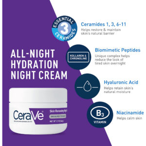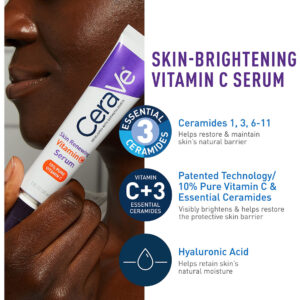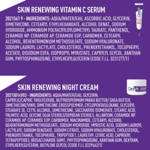 Conjunto de cuidados com a pele com sérum e creme noturno CeraVe | Sérum iluminador com 10% de vitamina C pura e hidratante noturno com peptídeos | Ácido hialurônico e ceramidas | 1 onça de sérum mais 1,7 onça de hidratante – [SÉRUM FACIAL E CREME FACIAL HIDRATANTE NOTURNO PARA PELE ENVELHECIDA SAUDÁVEL] Contém um sérum de vitamina C renovador de pele CeraVe de tamanho real e um soro de vitamina C renovador de pele CeraVe em tamanho real Creme. – [HIDRATANTE NOTURNO PARA ROSTO] Com peptídeos, ácido hialurônico, niacinamida e ceramidas, o Creme Noturno Renovador de Pele CeraVe ajuda a renovar a aparência da pele cansada durante a noite e ajuda reduz a aparência de linhas finas e rugas enquanto apoia a elasticidade da pele. – [SÉRUM ILUMINADOR DE PELE COM BENEFÍCIOS ANTIOXIDANTES] Sérum hidratante com 10% de ácido l-ascórbico, a forma mais pura de vitamina C, para ajudar a clarear a pele, ácido hialurônico e ceramidas para ajudar a melhorar o tom, a textura e a hidratação da pele. – [3 CERAMIDAS ESSENCIAIS] As ceramidas são encontradas naturalmente na pele e produzem até 50% dos lipídios na barreira cutânea. Todos os produtos CeraVe são formulados com três ceramidas essenciais (1, 3, 6-II) para ajudar a manter a barreira natural da pele. – [DESENVOLVIDO COM DERMATOLOGISTAS] O CeraVe Skincare é desenvolvido com dermatologistas e tem produtos adequados para pele seca, pele sensível, pele oleosa, propensa a acne e muito mais.