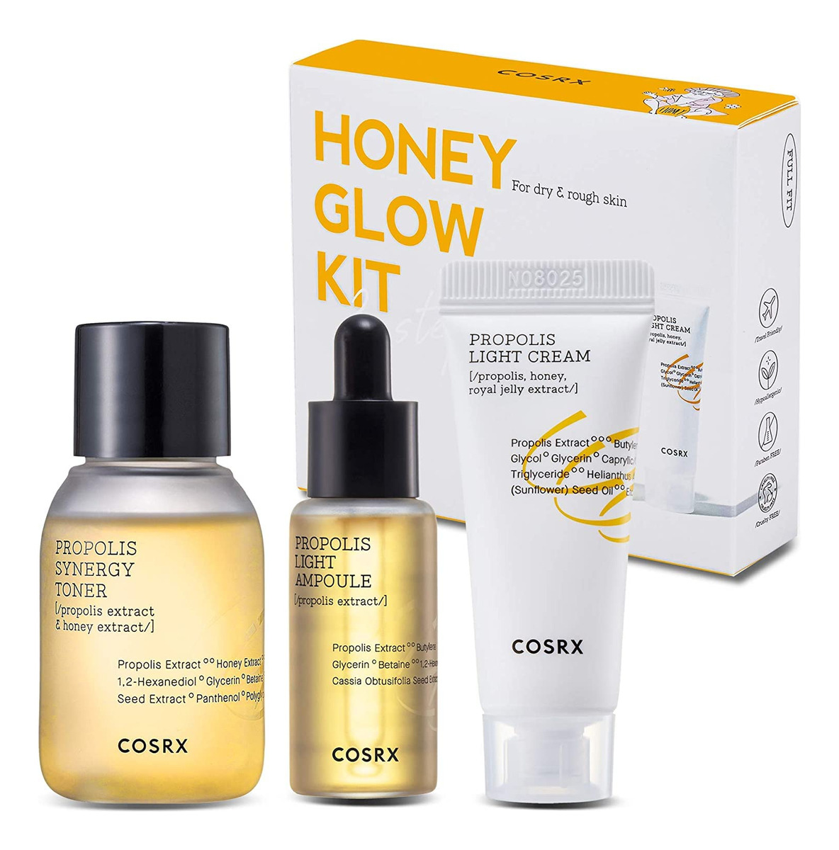 Kit COSRX Honey Glow | Tônico facial, sérum, creme com extrato de própolis | Umidade profunda, hidratação e nutrição | Conjunto de tamanho de viagem, conjunto de presente, cuidados com a pele coreanos, não testado em animais, sem parabenos — Kit COSRX Honey Glow | Tônico facial, sérum, creme com extrato de própolis | Umidade profunda, hidratação e nutrição | Conjunto de tamanhos de viagem, conjunto de presentes, cuidados com a pele coreanos, não Testado em animais, sem parabenos