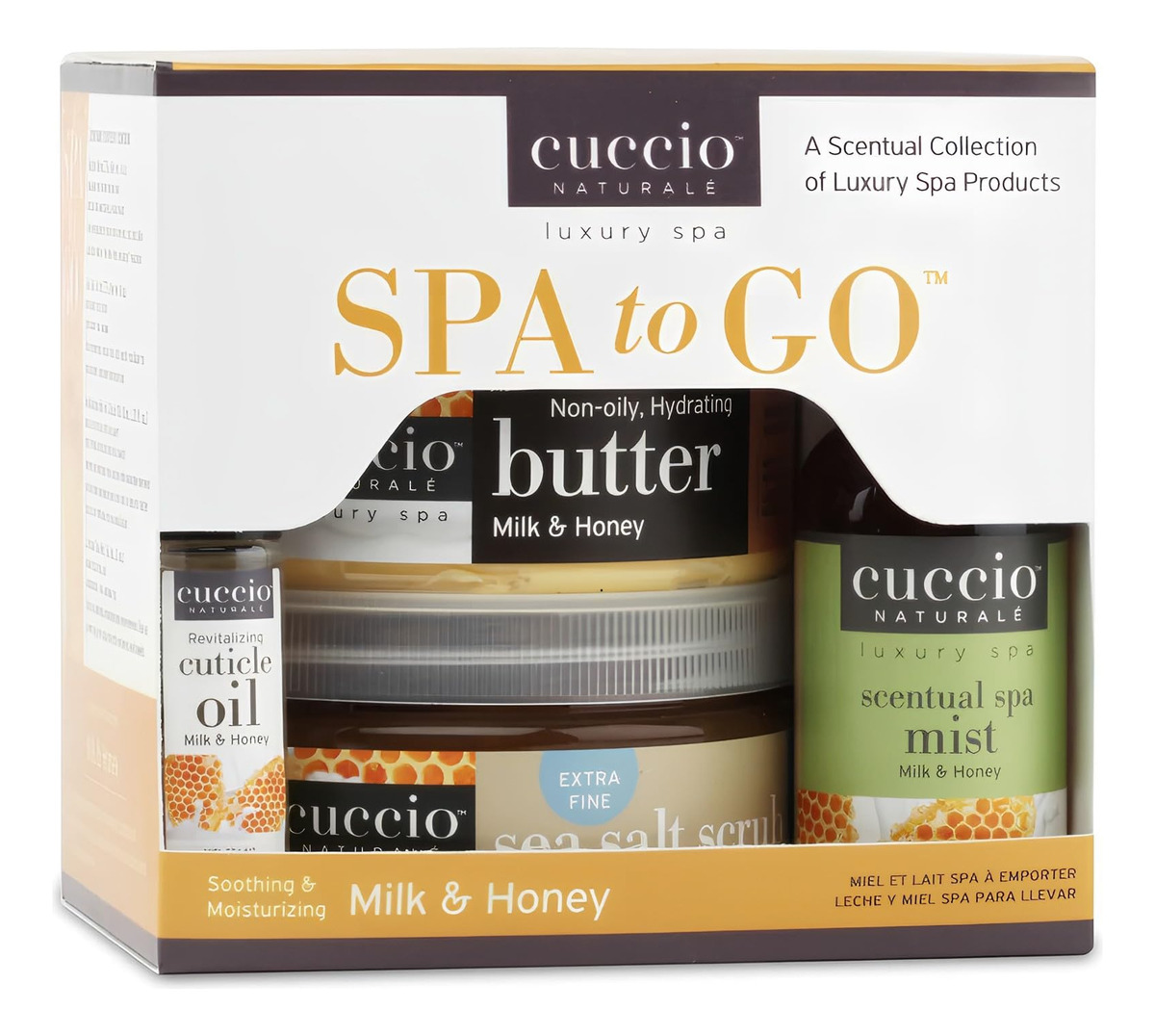 Conjunto de cuidados de pele nutritivos com leite e mel Cuccio de 4 peças para hidratação e suavização — o kit contém: Scentual Spa Mist 60 ml (2 fl oz.), mistura de manteiga 226 g (8 onças), esfoliante com sal marinho (sal ultrafino) 226 g (8 onças) e roll-on revitalizante de cutículas. – Mistura de manteiga com leite e mel: transforme sua pele de volta em seda saúde suave e saudável com nossa principal mistura de manteiga corporal de leite e mel de liberação prolongada de 24 horas! A magia dos nossos principais ingredientes: leite e mel, vitaminas e proteínas ricas, óleos naturais e manteigas. – Esfoliante de sal marinho extra fino com leite e mel: esfoliação com sal marinho extra fino dos melhores sais com um complexo natural de óleos ricos para fornecer umidade e nutrir a pele. Para uma pele mais macia, suave e hidratada. – Roll-On com óleo de cutícula com leite e mel: transforme suas cutículas de volta à saúde com a magia de nossos principais ingredientes: extratos de leite e mel, vitamina E, antioxidantes, ácidos graxos essenciais, óleo de cártamo prensado a frio e óleo de girassol preparado para o inverno. – Milk & Honey Scentual Spa Mist: uma névoa de spa brilhante para refrescar o ambiente de serviço. Pode ser pulverizado em toalhas e lençóis.