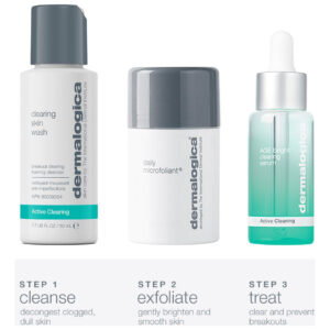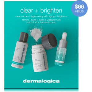 No mundo de hoje, estresse crônico, mudanças hormonais, estilo de vida e meio ambiente podem causar congestão, erupções cutâneas e tom de pele irregular, fazendo com que a pele pareça mais velha do que realmente é. Este kit contém ingredientes altamente ativos para limpar erupções cutâneas, suavizar a pele e iluminar o tom da pele. Use de manhã e à noite para ajudar a manter uma pele sempre clara e saudável. – O conjunto de tratamento e cuidados antienvelhecimento da acne combina um esfoliante facial suave, um sérum iluminador e um limpador para limpar a acne para combater erupções cutâneas, suavizar a textura e aumentar o brilho para uma tez saudável e brilhante que você vai adorar. – Duplique e clareie! O microfoliante diário deste kit elimina as células mortas da pele para uma aparência mais suave e brilhante, enquanto o sérum AGE Bright Clearing combate erupções cutâneas e tonalidades irregulares. Diga adeus à monotonia, olá você visivelmente mais claro e mais luminoso! – Obtenha uma pele mais clara e brilhante sem irritação. Este conjunto Dermalogica apresenta um pó esfoliante superfino de uso diário e um limpador calmante com plantas calmantes. Combata as erupções cutâneas sem se preocupar com a severidade. – Ingredientes científicos para resultados poderosos! O sérum AGE Bright Clearing apresenta um complexo AGE Bright exclusivo e niacinamida para combater erupções cutâneas e clarear o tom da pele, enquanto o microfoliante diário utiliza farelo de arroz para uma esfoliação suave. – Liberte seu brilho de manhã e à noite! Use o Clearing Skin Wash para limpar e remover a maquiagem, seguido pelo microfoliante diário para uma esfoliação suave. Finalize com o AGE Bright Clearing Serum. Prepare-se para uma pele visivelmente mais clara e radiante!