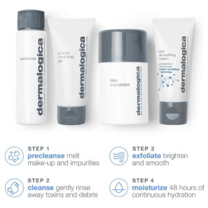 Kit Dermalogica Discover Healthy Skin – Inclui: pré-limpeza, lavagem facial, esfoliante facial e hidratante – Lave as impurezas para revelar uma pele brilhante – Kit Discover Healthy Skin: a introdução perfeita à Dermalogica. Esta coleção especial inclui nossos produtos favoritos e mais populares para todos os tipos de pele. – Mini kit de limpeza facial para viagem: este kit ideal para viagens inclui tudo o que você precisa para limpar, tonificar e hidratar sua pele em qualquer lugar. – Polir, lavar e nutrir: nosso trio de limpadores remove as células mortas da pele para revelar uma tez brilhante. Também elimina as impurezas e melhora a textura da pele. Termine sua rotina de limpeza com um creme nutritivo para suavizar a pele. – Limpe duas vezes com Precleanse para derreter impurezas e maquiagem. Prossiga com um gel de limpeza especial. Esfolie diariamente com o microfoliante diário. Hidrate com creme suavizante para a pele duas vezes ao dia. – Para todos os tipos de pele: feito com fórmulas suaves e hidratantes que são adequadas para todos os tipos de pele. Eles não retiram a oleosidade natural da pele, deixando-a macia, suave e hidratada.
