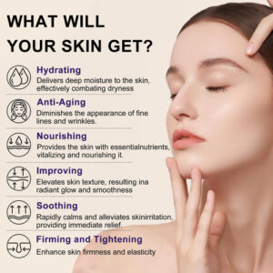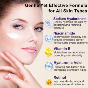 – Ingredientes naturais: nossos produtos para a pele contêm hialuronato de sódio Contém vitamina E, glicerina, etc. para acalmar, hidratar, nutre, preenche e reabastece Firme a pele para obter uma aparência radiante e jovem. Sem sulfato e sem crueldade, ideal para todos os tipos de pele, mesmo para peles sensíveis. Conjunto de