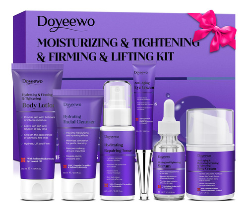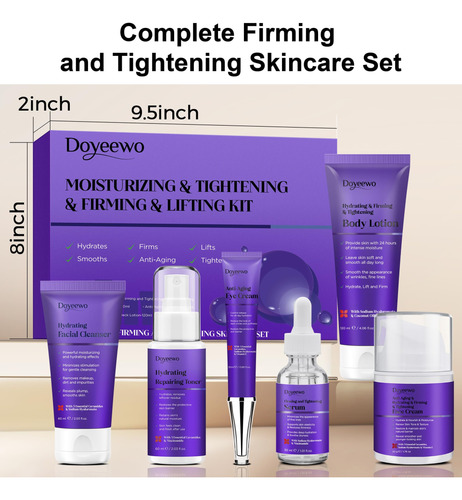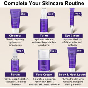 seu kit de rotina de cuidados com a pele: este kit de cuidados com a pele inclui tudo o que você precisa para uma pele com aparência mais jovem. Inclui um limpador facial, tônico, creme para os olhos, sérum, creme facial e loção para corpo e pescoço. Seu conjunto completo de cuidados com a pele para hidratação,