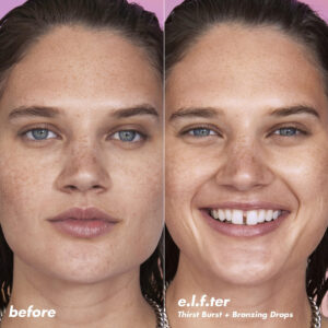 e.l.f. SKIN The Hottest Drops Duo, Holy Hydration! Conjunto de cuidados com a pele Thirst Burst Drops & Bronzing Drops, para uma aparência úmida e bronzeada, vegano e livre de crueldade — SÉRUNS ILUMINADORES E BRONZEADORES: uma dupla para viagens com a nova Holy Hydration da E.L.F. Thirst Burst Drops e bronzing drops para uma aparência úmida e bronzeada (com ou sem maquiagem). – Pele úmida e bronzeada: Thirst Burst Drops hidratam e iluminam a pele e deixam um acabamento úmido e brilhante, enquanto as gotas bronzeadoras nutrem, hidratam e conferem à pele uma tonalidade bronzeadora. – Benefícios nutritivos e hidratantes: infundidos com 1% de hidratação complexo de hibisco e ácido hialurônico, além de 5% de niacinamida clareadora (Holy Hydration! Thirst Burst Drops); antioxidantes e óleo de semente de girassol (Bronzing Drops). – COMO APLICAR: Adicione 1-3 gotas de Thirst Burst Drops e 1-3 gotas de Bronzing Drops no dorso da mão e misture tudo. Aplique na pele para obter sua aparência mais brilhante e bronzeada até agora. – Vegano e livre de crueldade: 100% vegano, e.l.f. é certificado duas vezes como livre de crueldade pela Leaping Bunny & PETA.
