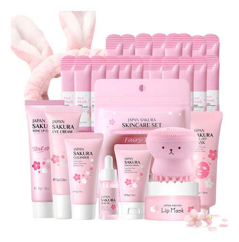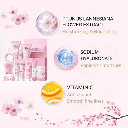 Conjunto de cuidados com a pele facial Sakura Presentes femininos (pacote com 8)