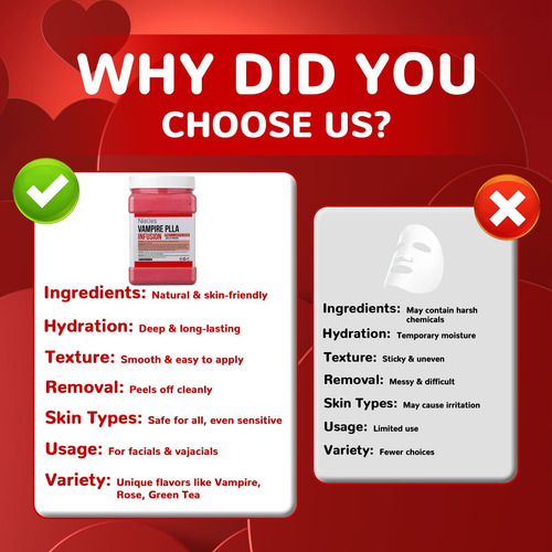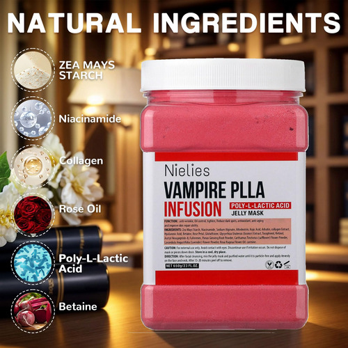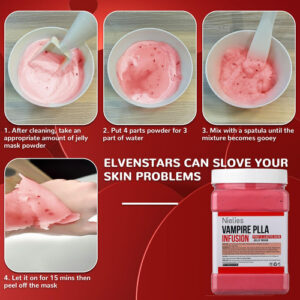 – Transforme sua rotina de cuidados com a pele com nossa máscara de gelatina com infusão de vampiro para tratamentos faciais. Experimente um tratamento de spa luxuoso em casa. – Obtenha uma pele suave e revitalizada com nossa máscara de geleia de vampiro em pó, projetada para uso profissional. Esta máscara gelatinosa cria uma pele protetora e hidratante para um efeito calmante e hidratante.