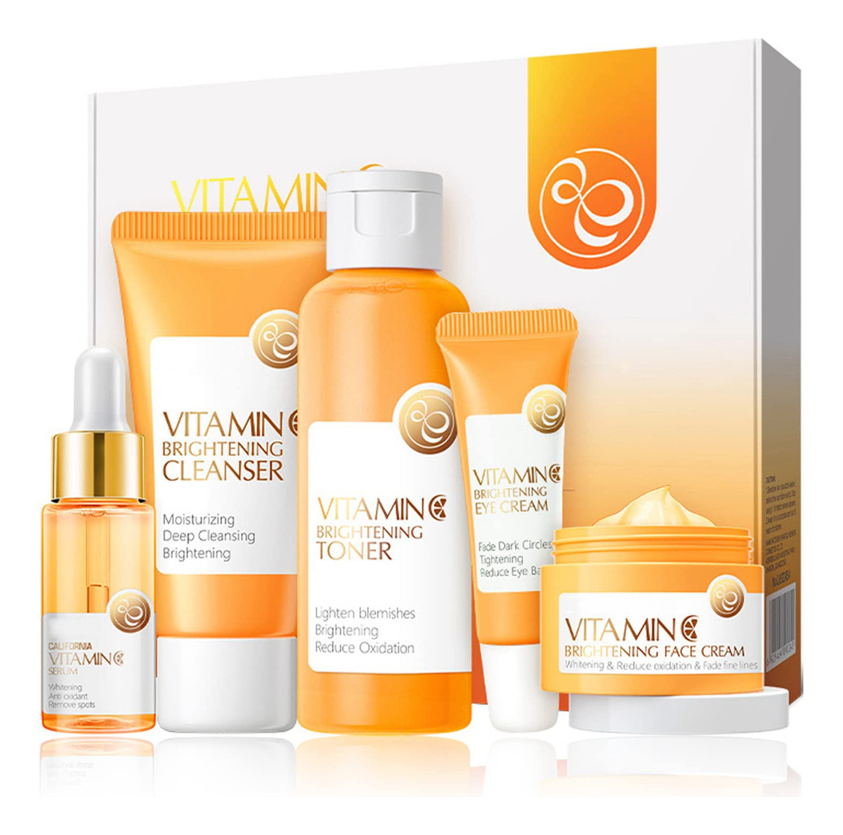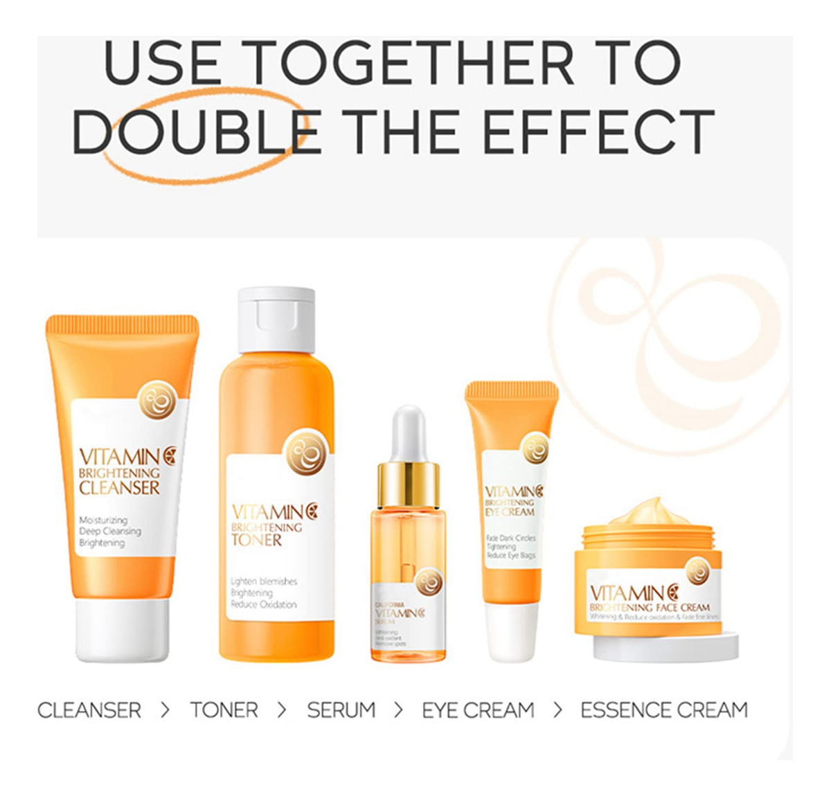 Conjunto de cuidados faciais com vitamina C Limpador facial Fade Dark Circles Eye Cream Essence Lighten Spots VC Conjunto de cuidados com a pele facial antienvelhecimento Produtos de beleza para cuidados com a pele INFORMAÇÕES DO PRODUTO VITAMINA C Efeitos do conjunto de cuidados com a pele: antioxidante/clareia manchas Introdução: o conjunto de cuidados com a pele com vitamina C pode nutrir suavemente a pele, reduzir a oxidação e clarear o tom da pele, deixando sua pele brilhante e suave! O CONJUNTO DE CUIDADOS COM A PELE CONTÉM LIMPADOR DE VITAMINA C 50 g de tônico de vitamina C 100 ml de soro de vitamina C 17 ml de creme para os olhos de vitamina C 15 g de creme de essência de vitamina C 25 g do kit de cuidados faciais com vitamina C Etapa 1: LIMPADOR FACIAL DE VITAMINA C 50 g Limpe a sujeira e a pele delicada Etapa 2: Tônico de vitamina C 100 ml Refrescante e hidratante. Etapa 3: SÉRUM DE VITAMINA C: 17 ml Nutre, ilumina a pele clara e translúcida. P4: CREME PARA OS OLHOS COM VITAMINA C 15 g Refrescante e hidratante. Antienvelhecimento e desbota manchas Etapa 5: CREME de essência de vitamina C 25 g LIMPADOR de pele nutritivo e translúcido > TÔNICO > SÉRUM > CREME PARA OS OLHOS > CREME ESSENCIAL — Vitamina C para sérum facial: o conjunto de 5 peças para a pele contém VC e muitos tipos de extratos vegetais, repara eficazmente a pele danificada, resolve rugas, manchas, marcas de acne, previne a pigmentação, reduz os poros, torna a pele brilhante e úmida por muito tempo — Eficácia dos produtos de cuidado da pele: antienvelhecimento, hidratante e nutritivo, previne o envelhecimento da pele, melhora a pele danificada. As instruções fáceis de seguir facilitam para incorporar à sua rotina diária de cuidados com a pele para obter o máximo de resultados – Conjunto de presentes para cuidados com a pele: este kit de rotina de cuidados com a pele de 5 peças para mulheres contém nosso limpador facial, tônico, sérum, sérum para os olhos, sérum essencial. Formulado para desobstruir suavemente os poros e aliviar a vermelhidão, ao mesmo tempo que protege a pele dos danos causados pelo sol. Ajuda a combater os 5 sinais precoces de pele desidratada: secura, opacidade, linhas secas de desidratação, rigidez e aspereza – Adequado para todos os tipos de pele: nosso kit de cuidados com a pele hidrata profundamente e ilumina a pele e tem um É adequado para todos os tipos de pele, incluindo pele seca, oleosa, sensível ou qualquer combinação delas. Melhore sua rotina de cuidados com a pele com nossa essência hidratante, perfeita para qualquer tipo de pele — conjuntos de presentes femininos: este pacote de 5 peças de produtos de beleza em uma luxuosa caixa de presente é ideal para adolescentes, mulheres, sua família, amantes e amigos em festivais, Natal, Dia dos Namorados e Dia das Mães! Esta é a escolha perfeita para dar presentes, manter o rosto e o corpo limpos e desfrutar de uma pele bonita. Envie-lhes beleza, deixe-os mais confiantes!