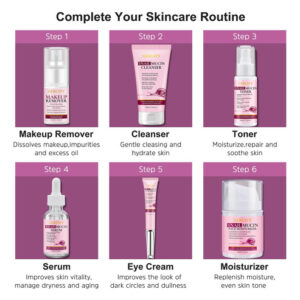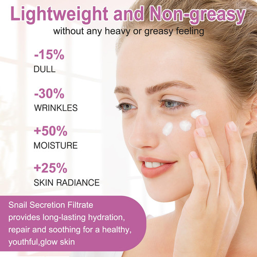 Leve e não oleosa: nossos produtos para a pele facial são absorvidos rapidamente para hidratar, reparar e suavizar a pele de longa duração. Desfrute de um brilho saudável sem qualquer sensação de peso ou oleosidade. A mucina de caracol é obtida de forma amigável. Não há caracóis Harmed – Hidratante, reparador e calmante: este conjunto de cuidados com a pele inclui tônico de mucina de caracol, sérum, creme para os olhos, hidratante, tudo