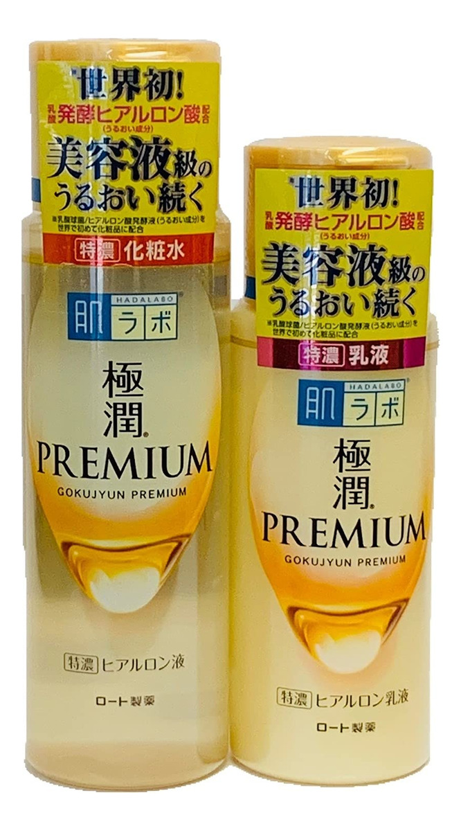 Conjunto de loção hialurônica e leite premium Rohto Hadalabo Gokujyun
