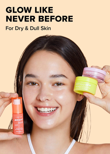 – COMO USAR: Após a limpeza, aplique a quantidade adequada de Bright Side Up, seguida de Say You Dew no rosto e bata suavemente para melhorar a absorção. Finalize a rotina aplicando Plush Party nos lábios com a espátula.