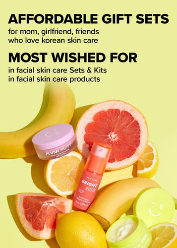 – GLOW ON THE GO FOR GLASS SKIN: trio de produtos ricos em vitamina C que inclui sérum de viagem Bright Side Up 15 ml/0,50 fl oz., hidratante Say You Dew 30 ml/0,50 fl oz. e máscara labial Plush Party 12g/0,42 oz para iluminar e hidratar a pele em qualquer lugar.
