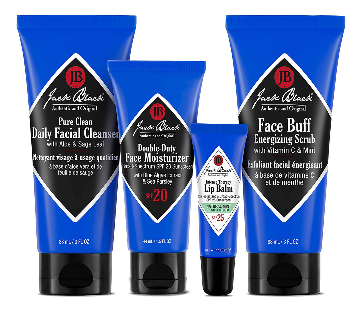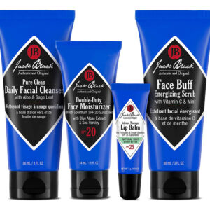 Limpador facial diário Jack Black Skin Saviors Set Pure Clean, hidratante facial duplo SPF 20, protetor labial de terapia intensa SPF 25 e manteiga de karité natural e esfoliante energizante facial – O limpador facial diário Jack Black Pure Clean é um limpador facial e tônico duplo que remove sujeira e óleo profundos para uma pele clara, lisa e pronta para o barbear. – Hidratante facial Jack Black Double Duty SPF 20 é uma fórmula leve, protetor solar diário de amplo espectro e um tratamento facial avançado em um. – Jack Black Face Buff Energizing Scrub é um pré-barbear de limpeza profunda limpador e esfoliante em um que contém partículas de lavagem ecológicas e biodegradáveis. – O protetor labial Jack Black contém antioxidantes, vitamina E e chá verde, proteção solar de amplo espectro e emolientes naturais.