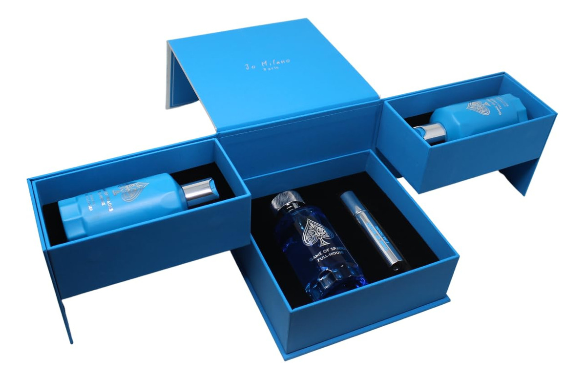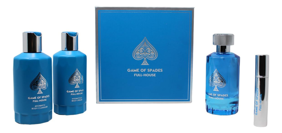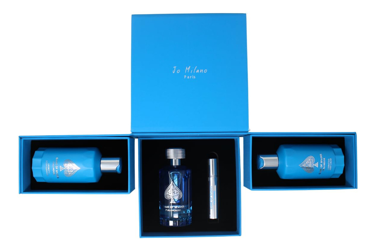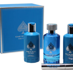 Eleve sua rotina de cuidados pessoais com o conjunto Jo Milano Game of Spades FULL-HOUSE de 3 peças. Esta coleção luxuosa inclui um perfume de 3,4 onças com um aroma ousado e duradouro, um limpador corporal de 6,8 onças para uma limpeza refrescante e um creme corporal de 6,8 onças para hidratação e nutrição profundas. Perfeitamente elaborado para proporcionar uma experiência premium, este conjunto é um excelente presente ou uma adição sofisticada ao seu ritual diário de autocuidado. – Conjunto completo de luxo: inclui um perfume de 3,4 onças, um limpador corporal de 6,8 onças e um creme corporal de 6,8 onças para uma experiência de cuidado corporal completo. – Fragrância ousada e duradoura: o perfume oferece um perfume inesquecível que dura o dia todo. – Limpeza refrescante: o limpador corporal purifica suavemente revitaliza e revitaliza a pele, deixando-a fresca e suave. – Hidratação profunda: o creme corporal nutre e hidrata, garantindo uma suavidade sedosa e pele hidratada. — Opção de presente perfeita: embalada com elegância, tornando-a ideal para ocasiões especiais ou indulgência pessoal.
